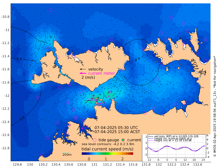 98cm/s 78T +4cm/s rms + 6cm/s 51T. Darwin_C1 52m 74cm/s 92T +4cm/s rms + 7cm/s -161T. Darwin_CW1 22m 46cm/s 73T +4cm/s rms + 8cm/s 61T. Darwin_CW2 34m 53cm/s 46T +3cm/s rms + 9cm/s 98T. Darwin_CW3 22m 66cm/s 90T +5cm/s rms + 7cm/s 88T. Darwin_C3 56m 57cm/s 66T +2cm/s rms + 9cm/s -126T. Darwin_CTbW 22m 17cm/s 80T +1cm/s rms + 1cm/s -47T. DARBGF 30m 13cm/s 109T +4cm/s rms + 3cm/s 80T. NRSDAR 19m 8cm Goodrich Bank 110cm Point Jenny 109cm Native Point 115cm Fish Reef 115cm Tapa Bay 65cm Point Fawcett (Offshore) 124cm Burge Point 103cm Munkunuwa 102cm Beagle A 105cm Parsons Bank 122cm Fenton Patches 105cm Hancox Shoal Area 118cm Nightcliff 118cm Darwin 109cm Charles Point Patches 101cm Glyde Point 95cm Chambers Bay 96cm Point Stuart 90cm Cape Hotham 88cm Christine Reef 105cm West Alligator Head 105cm East Field Island 80cm Two Hills Bay 78cm Camp Point 108cm Medina Inlet South 41cm South Barlow Point 35cm St. Asaph Bay 10cm Cape Van Dieman 8cm Snake Bay 16cm Cache Point 21cm Point Jahleel (Off) 42cm Cape Don 13cm Port Essington 13cm Smith Point - West 7cm NW Peacock Island 4cm North Of Jones Shoal 1cm Peacock Island 4cm Point David 8cm D'urville Point 3cm Copeland Island 7cm One Tree Point
