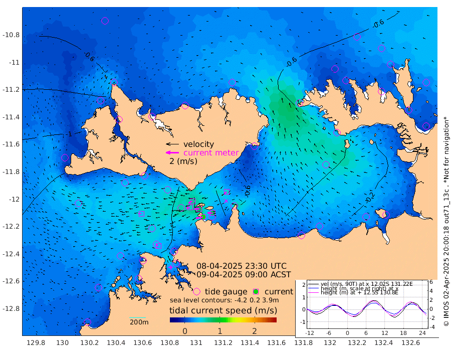 113cm/s -102T +4cm/s rms + 6cm/s 51T. Darwin_C1 52m 77cm/s -89T +4cm/s rms + 7cm/s -161T. Darwin_CW1 22m 58cm/s -107T +4cm/s rms + 8cm/s 61T. Darwin_CW2 34m 49cm/s -130T +3cm/s rms + 9cm/s 98T. Darwin_CW3 22m 78cm/s -91T +5cm/s rms + 7cm/s 88T. Darwin_C3 56m 68cm/s -115T +2cm/s rms + 9cm/s -126T. Darwin_CTbW 22m 42cm/s -91T +1cm/s rms + 1cm/s -47T. DARBGF 30m 37cm/s -61T +4cm/s rms + 3cm/s 80T. NRSDAR 19m -36cm Goodrich Bank -128cm Point Jenny -127cm Native Point -133cm Fish Reef -136cm Tapa Bay -100cm Point Fawcett (Offshore) -131cm Burge Point -126cm Munkunuwa -113cm Beagle A -125cm Parsons Bank -125cm Fenton Patches -118cm Hancox Shoal Area -129cm Nightcliff -135cm Darwin -134cm Charles Point Patches -90cm Glyde Point -53cm Chambers Bay -44cm Point Stuart -71cm Cape Hotham -40cm Christine Reef -41cm West Alligator Head -21cm East Field Island -55cm Two Hills Bay -51cm Camp Point -131cm Medina Inlet South -79cm South Barlow Point -67cm St. Asaph Bay -43cm Cape Van Dieman -46cm Snake Bay -45cm Cache Point -45cm Point Jahleel (Off) -61cm Cape Don -50cm Port Essington -48cm Smith Point - West -44cm NW Peacock Island -42cm North Of Jones Shoal -16cm Peacock Island -51cm Point David -48cm D'urville Point -49cm Copeland Island -52cm One Tree Point