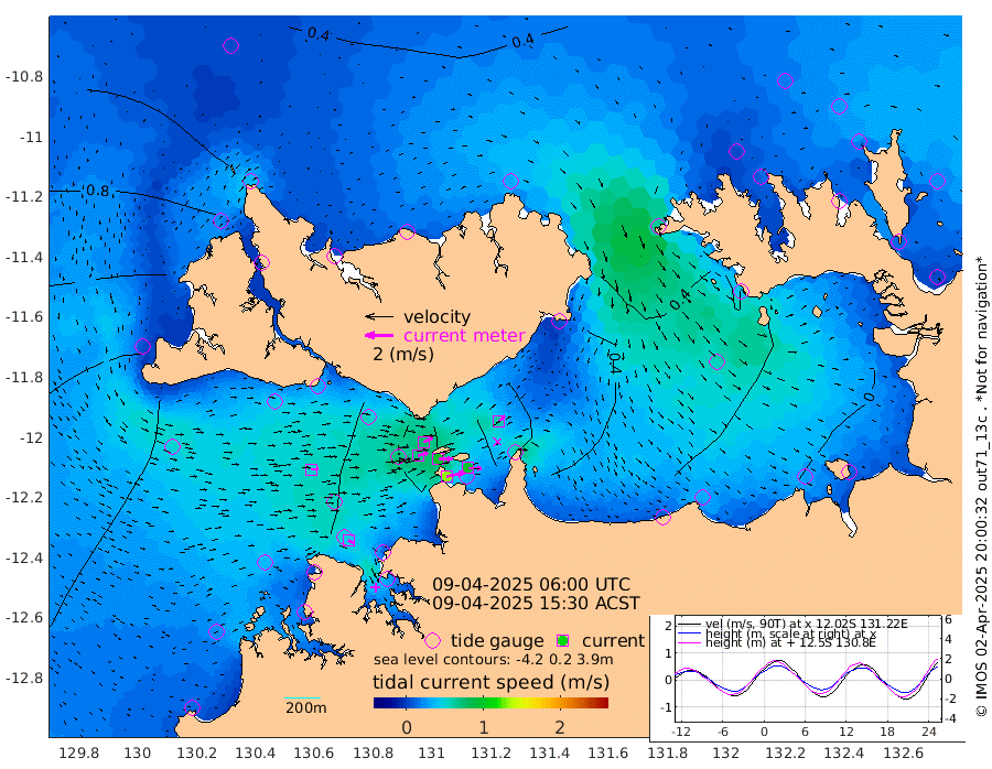 133cm/s 78T +4cm/s rms + 6cm/s 51T. Darwin_C1 52m 96cm/s 91T +4cm/s rms + 7cm/s -161T. Darwin_CW1 22m 72cm/s 74T +4cm/s rms + 8cm/s 61T. Darwin_CW2 34m 59cm/s 49T +3cm/s rms + 9cm/s 98T. Darwin_CW3 22m 97cm/s 89T +5cm/s rms + 7cm/s 88T. Darwin_C3 56m 75cm/s 65T +2cm/s rms + 9cm/s -126T. Darwin_CTbW 22m 50cm/s 88T +1cm/s rms + 1cm/s -47T. DARBGF 30m 48cm/s 117T +4cm/s rms + 3cm/s 80T. NRSDAR 19m 37cm Goodrich Bank 155cm Point Jenny 155cm Native Point 165cm Fish Reef 162cm Tapa Bay 111cm Point Fawcett (Offshore) 167cm Burge Point 157cm Munkunuwa 150cm Beagle A 151cm Parsons Bank 168cm Fenton Patches 140cm Hancox Shoal Area 160cm Nightcliff 163cm Darwin 158cm Charles Point Patches 105cm Glyde Point 52cm Chambers Bay 42cm Point Stuart 76cm Cape Hotham 46cm Christine Reef 41cm West Alligator Head 19cm East Field Island 53cm Two Hills Bay 51cm Camp Point 160cm Medina Inlet South 93cm South Barlow Point 76cm St. Asaph Bay 42cm Cape Van Dieman 43cm Snake Bay 43cm Cache Point 44cm Point Jahleel (Off) 57cm Cape Don 41cm Port Essington 43cm Smith Point - West 34cm NW Peacock Island 30cm North Of Jones Shoal 11cm Peacock Island 25cm Point David 38cm D'urville Point 23cm Copeland Island 28cm One Tree Point