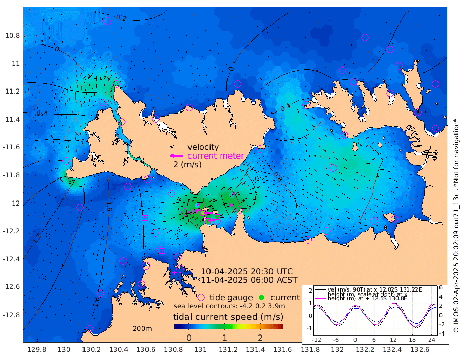 107cm/s 79T +4cm/s rms + 6cm/s 51T. Darwin_C1 52m 92cm/s 93T +4cm/s rms + 7cm/s -161T. Darwin_CW1 22m 82cm/s 72T +4cm/s rms + 8cm/s 61T. Darwin_CW2 34m 61cm/s 44T +3cm/s rms + 9cm/s 98T. Darwin_CW3 22m 129cm/s 89T +5cm/s rms + 7cm/s 88T. Darwin_C3 56m 48cm/s 66T +2cm/s rms + 9cm/s -126T. Darwin_CTbW 22m 22cm/s 75T +1cm/s rms + 1cm/s -47T. DARBGF 30m 12cm/s 101T +4cm/s rms + 3cm/s 80T. NRSDAR 19m -22cm Goodrich Bank 146cm Point Jenny 142cm Native Point 168cm Fish Reef 170cm Tapa Bay 70cm Point Fawcett (Offshore) 187cm Burge Point 163cm Munkunuwa 122cm Beagle A 185cm Parsons Bank 175cm Fenton Patches 182cm Hancox Shoal Area 190cm Nightcliff 206cm Darwin 184cm Charles Point Patches 150cm Glyde Point 125cm Chambers Bay 122cm Point Stuart 136cm Cape Hotham 103cm Christine Reef 130cm West Alligator Head 118cm East Field Island 107cm Two Hills Bay 102cm Camp Point 170cm Medina Inlet South 47cm South Barlow Point 22cm St. Asaph Bay -17cm Cape Van Dieman -12cm Snake Bay -11cm Cache Point 8cm Point Jahleel (Off) 54cm Cape Don 18cm Port Essington 16cm Smith Point - West 13cm NW Peacock Island 2cm North Of Jones Shoal 3cm Peacock Island 38cm Point David 19cm D'urville Point 42cm Copeland Island 37cm One Tree Point