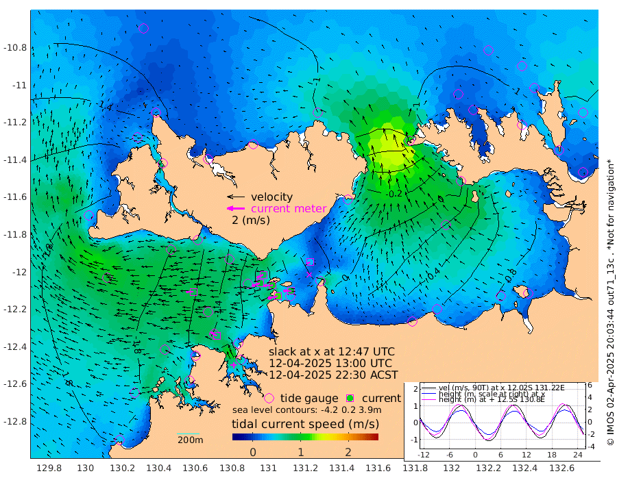 123cm/s -102T +4cm/s rms + 6cm/s 51T. Darwin_C1 52m 90cm/s -89T +4cm/s rms + 7cm/s -161T. Darwin_CW1 22m 93cm/s -109T +4cm/s rms + 8cm/s 61T. Darwin_CW2 34m 35cm/s -120T +3cm/s rms + 9cm/s 98T. Darwin_CW3 22m 103cm/s -93T +5cm/s rms + 7cm/s 88T. Darwin_C3 56m 80cm/s -115T +2cm/s rms + 9cm/s -126T. Darwin_CTbW 22m 83cm/s -90T +1cm/s rms + 1cm/s -47T. DARBGF 30m 75cm/s -58T +4cm/s rms + 3cm/s 80T. NRSDAR 19m -85cm Goodrich Bank -190cm Point Jenny -190cm Native Point -195cm Fish Reef -196cm Tapa Bay -166cm Point Fawcett (Offshore) -192cm Burge Point -194cm Munkunuwa -190cm Beagle A -179cm Parsons Bank -193cm Fenton Patches -165cm Hancox Shoal Area -197cm Nightcliff -184cm Darwin -192cm Charles Point Patches -87cm Glyde Point 5cm Chambers Bay 36cm Point Stuart -52cm Cape Hotham 3cm Christine Reef 52cm West Alligator Head 94cm East Field Island -12cm Two Hills Bay -17cm Camp Point -194cm Medina Inlet South -153cm South Barlow Point -136cm St. Asaph Bay -94cm Cape Van Dieman -99cm Snake Bay -90cm Cache Point -84cm Point Jahleel (Off) -75cm Cape Don -81cm Port Essington -87cm Smith Point - West -77cm NW Peacock Island -83cm North Of Jones Shoal -29cm Peacock Island -63cm Point David -83cm D'urville Point -59cm Copeland Island -67cm One Tree Point
