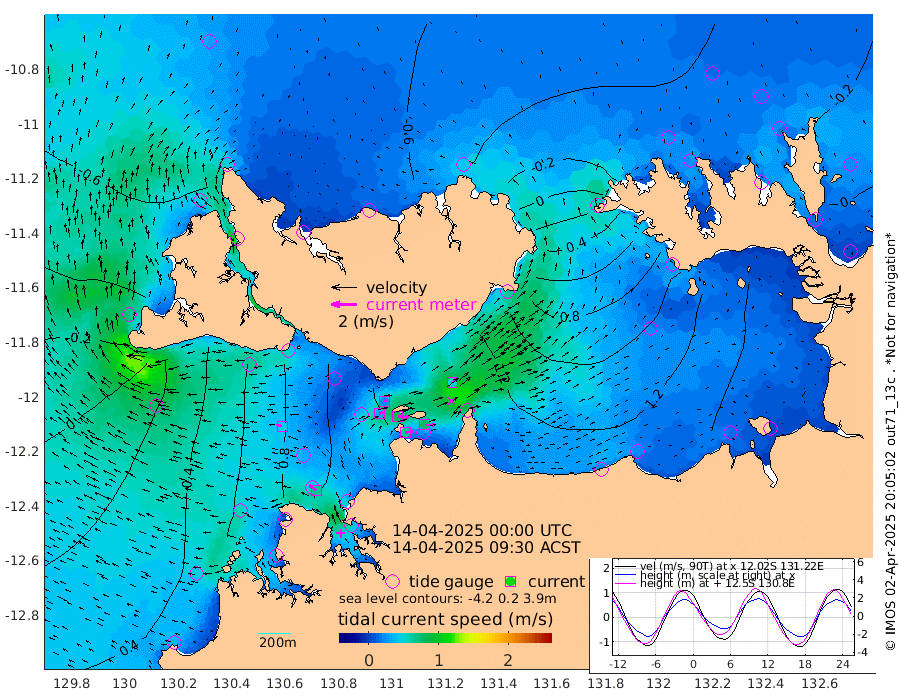 67cm/s 81T +4cm/s rms + 6cm/s 51T. Darwin_C1 52m 79cm/s 90T +4cm/s rms + 7cm/s -161T. Darwin_CW1 22m 34cm/s 71T +4cm/s rms + 8cm/s 61T. Darwin_CW2 34m 52cm/s 44T +3cm/s rms + 9cm/s 98T. Darwin_CW3 22m 83cm/s 91T +5cm/s rms + 7cm/s 88T. Darwin_C3 56m 25cm/s 68T +2cm/s rms + 9cm/s -126T. Darwin_CTbW 22m 45cm/s -79T +1cm/s rms + 1cm/s -47T. DARBGF 30m 63cm/s -52T +4cm/s rms + 3cm/s 80T. NRSDAR 19m -57cm Goodrich Bank 27cm Point Jenny 23cm Native Point 47cm Fish Reef 50cm Tapa Bay -22cm Point Fawcett (Offshore) 64cm Burge Point 34cm Munkunuwa 6cm Beagle A 70cm Parsons Bank 55cm Fenton Patches 86cm Hancox Shoal Area 77cm Nightcliff 98cm Darwin 69cm Charles Point Patches 117cm Glyde Point 168cm Chambers Bay 192cm Point Stuart 133cm Cape Hotham 148cm Christine Reef 218cm West Alligator Head 242cm East Field Island 139cm Two Hills Bay 124cm Camp Point 52cm Medina Inlet South -41cm South Barlow Point -49cm St. Asaph Bay -62cm Cape Van Dieman -56cm Snake Bay -48cm Cache Point -24cm Point Jahleel (Off) 26cm Cape Don -20cm Port Essington -24cm Smith Point - West -22cm NW Peacock Island -29cm North Of Jones Shoal -9cm Peacock Island 4cm Point David -23cm D'urville Point 9cm Copeland Island 5cm One Tree Point