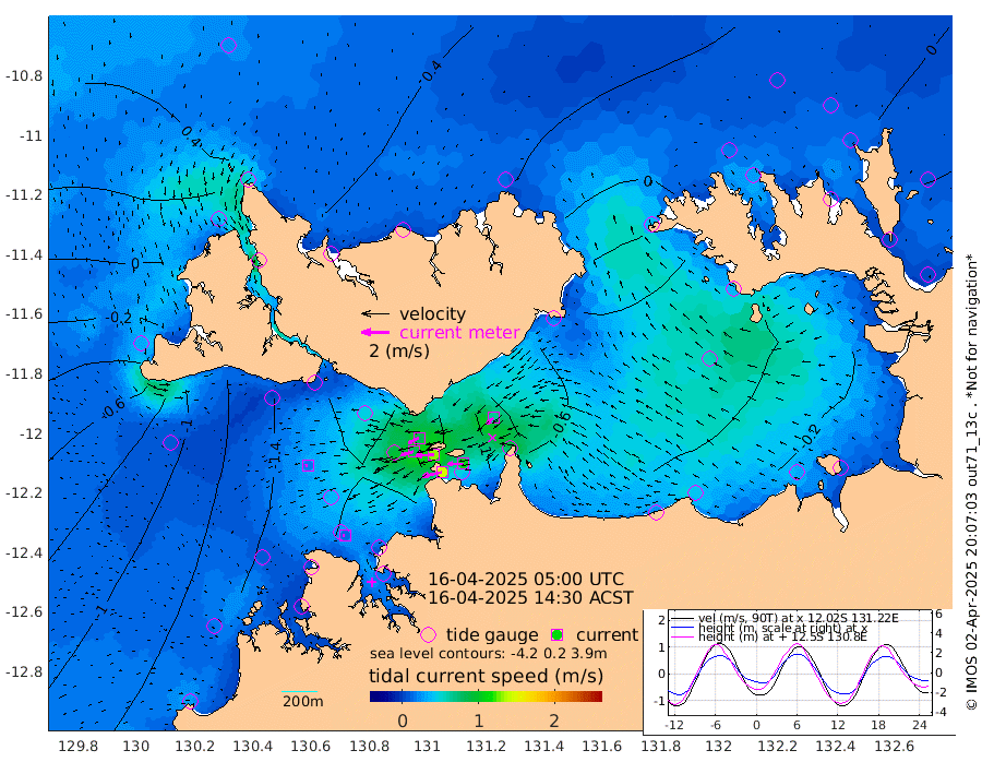 145cm/s -102T +4cm/s rms + 6cm/s 51T. Darwin_C1 52m 109cm/s -90T +4cm/s rms + 7cm/s -161T. Darwin_CW1 22m 86cm/s -107T +4cm/s rms + 8cm/s 61T. Darwin_CW2 34m 67cm/s -134T +3cm/s rms + 9cm/s 98T. Darwin_CW3 22m 129cm/s -91T +5cm/s rms + 7cm/s 88T. Darwin_C3 56m 83cm/s -115T +2cm/s rms + 9cm/s -126T. Darwin_CTbW 22m 17cm/s -106T +1cm/s rms + 1cm/s -47T. DARBGF 30m 14cm/s -103T +4cm/s rms + 3cm/s 80T. NRSDAR 19m 57cm Goodrich Bank -92cm Point Jenny -90cm Native Point -102cm Fish Reef -118cm Tapa Bay -9cm Point Fawcett (Offshore) -126cm Burge Point -120cm Munkunuwa -59cm Beagle A -143cm Parsons Bank -117cm Fenton Patches -142cm Hancox Shoal Area -146cm Nightcliff -157cm Darwin -129cm Charles Point Patches -104cm Glyde Point -83cm Chambers Bay -75cm Point Stuart -84cm Cape Hotham -73cm Christine Reef -83cm West Alligator Head -69cm East Field Island -64cm Two Hills Bay -60cm Camp Point -119cm Medina Inlet South -7cm South Barlow Point 23cm St. Asaph Bay 54cm Cape Van Dieman 46cm Snake Bay 54cm Cache Point 31cm Point Jahleel (Off) -18cm Cape Don 16cm Port Essington 14cm Smith Point - West 18cm NW Peacock Island 34cm North Of Jones Shoal 9cm Peacock Island -8cm Point David 10cm D'urville Point -14cm Copeland Island -5cm One Tree Point