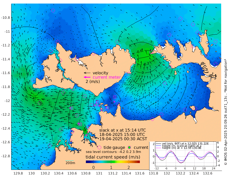 66cm/s -103T +4cm/s rms + 6cm/s 51T. Darwin_C1 52m 48cm/s -86T +4cm/s rms + 7cm/s -161T. Darwin_CW1 22m 57cm/s -105T +4cm/s rms + 8cm/s 61T. Darwin_CW2 34m 10cm/s -107T +3cm/s rms + 9cm/s 98T. Darwin_CW3 22m 71cm/s -93T +5cm/s rms + 7cm/s 88T. Darwin_C3 56m 37cm/s -116T +2cm/s rms + 9cm/s -126T. Darwin_CTbW 22m 68cm/s -90T +1cm/s rms + 1cm/s -47T. DARBGF 30m 71cm/s -58T +4cm/s rms + 3cm/s 80T. NRSDAR 19m -115cm Goodrich Bank -166cm Point Jenny -171cm Native Point -160cm Fish Reef -166cm Tapa Bay -158cm Point Fawcett (Offshore) -166cm Burge Point -172cm Munkunuwa -171cm Beagle A -145cm Parsons Bank -162cm Fenton Patches -127cm Hancox Shoal Area -141cm Nightcliff -145cm Darwin -165cm Charles Point Patches -55cm Glyde Point 47cm Chambers Bay 72cm Point Stuart -14cm Cape Hotham 27cm Christine Reef 91cm West Alligator Head 130cm East Field Island 20cm Two Hills Bay 5cm Camp Point -164cm Medina Inlet South -157cm South Barlow Point -147cm St. Asaph Bay -121cm Cape Van Dieman -119cm Snake Bay -112cm Cache Point -95cm Point Jahleel (Off) -65cm Cape Don -86cm Port Essington -89cm Smith Point - West -79cm NW Peacock Island -82cm North Of Jones Shoal -27cm Peacock Island -45cm Point David -81cm D'urville Point -38cm Copeland Island -48cm One Tree Point