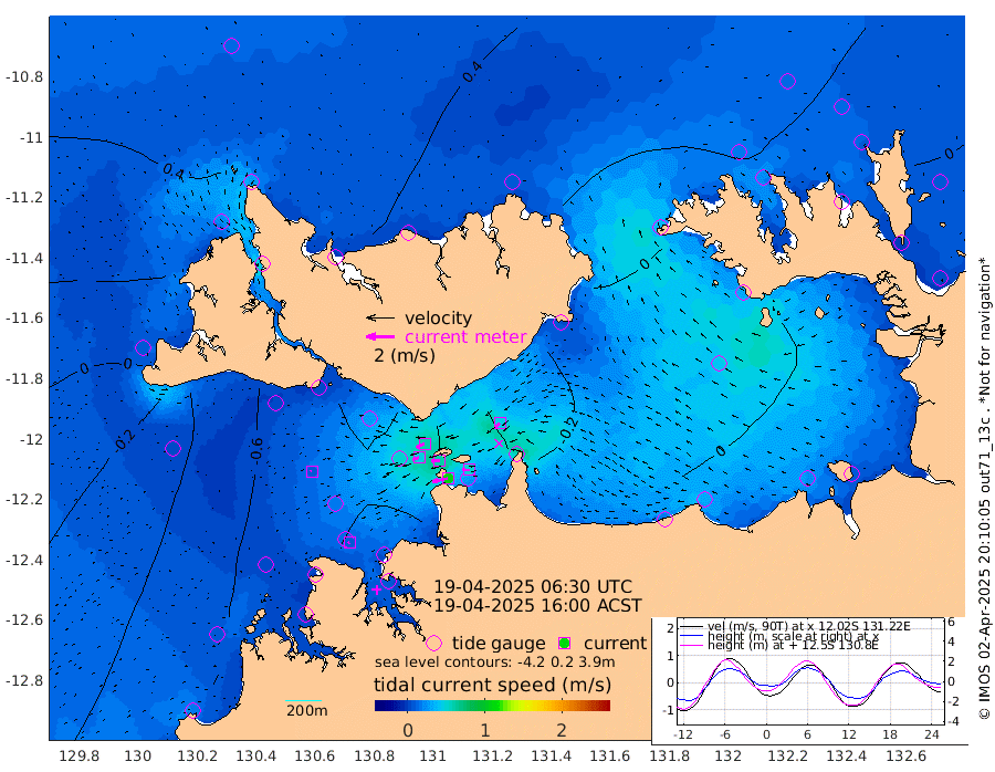 109cm/s -102T +4cm/s rms + 6cm/s 51T. Darwin_C1 52m 52cm/s -89T +4cm/s rms + 7cm/s -161T. Darwin_CW1 22m 47cm/s -108T +4cm/s rms + 8cm/s 61T. Darwin_CW2 34m 47cm/s -130T +3cm/s rms + 9cm/s 98T. Darwin_CW3 22m 59cm/s -90T +5cm/s rms + 7cm/s 88T. Darwin_C3 56m 62cm/s -115T +2cm/s rms + 9cm/s -126T. Darwin_CTbW 22m 8cm/s -104T +1cm/s rms + 1cm/s -47T. DARBGF 30m 8cm/s -118T +4cm/s rms + 3cm/s 80T. NRSDAR 19m 56cm Goodrich Bank -27cm Point Jenny -26cm Native Point -29cm Fish Reef -40cm Tapa Bay 24cm Point Fawcett (Offshore) -46cm Burge Point -50cm Munkunuwa -6cm Beagle A -66cm Parsons Bank -40cm Fenton Patches -63cm Hancox Shoal Area -66cm Nightcliff -60cm Darwin -36cm Charles Point Patches -36cm Glyde Point -28cm Chambers Bay -26cm Point Stuart -31cm Cape Hotham -29cm Christine Reef -32cm West Alligator Head -20cm East Field Island -22cm Two Hills Bay -11cm Camp Point -40cm Medina Inlet South 18cm South Barlow Point 38cm St. Asaph Bay 54cm Cape Van Dieman 47cm Snake Bay 54cm Cache Point 36cm Point Jahleel (Off) 7cm Cape Don 28cm Port Essington 22cm Smith Point - West 23cm NW Peacock Island 36cm North Of Jones Shoal 11cm Peacock Island 2cm Point David 17cm D'urville Point -3cm Copeland Island 7cm One Tree Point
