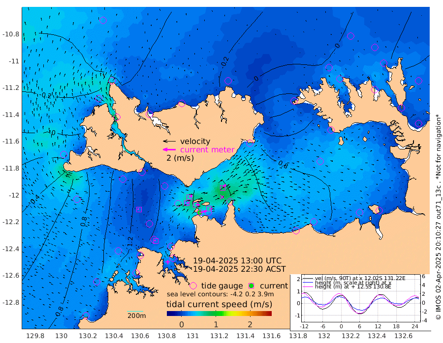113cm/s 78T +4cm/s rms + 6cm/s 51T. Darwin_C1 52m 54cm/s 91T +4cm/s rms + 7cm/s -161T. Darwin_CW1 22m 32cm/s 73T +4cm/s rms + 8cm/s 61T. Darwin_CW2 34m 74cm/s 43T +3cm/s rms + 9cm/s 98T. Darwin_CW3 22m 57cm/s 91T +5cm/s rms + 7cm/s 88T. Darwin_C3 56m 57cm/s 65T +2cm/s rms + 9cm/s -126T. Darwin_CTbW 22m 16cm/s -79T +1cm/s rms + 1cm/s -47T. DARBGF 30m 21cm/s -40T +4cm/s rms + 3cm/s 80T. NRSDAR 19m -47cm Goodrich Bank 29cm Point Jenny 29cm Native Point 32cm Fish Reef 51cm Tapa Bay -24cm Point Fawcett (Offshore) 53cm Burge Point 39cm Munkunuwa 4cm Beagle A 77cm Parsons Bank 47cm Fenton Patches 83cm Hancox Shoal Area 76cm Nightcliff 84cm Darwin 58cm Charles Point Patches 80cm Glyde Point 92cm Chambers Bay 100cm Point Stuart 82cm Cape Hotham 82cm Christine Reef 110cm West Alligator Head 111cm East Field Island 79cm Two Hills Bay 72cm Camp Point 45cm Medina Inlet South -21cm South Barlow Point -42cm St. Asaph Bay -45cm Cape Van Dieman -34cm Snake Bay -42cm Cache Point -20cm Point Jahleel (Off) 23cm Cape Don -3cm Port Essington -3cm Smith Point - West 4cm NW Peacock Island -17cm North Of Jones Shoal -3cm Peacock Island 49cm Point David 10cm D'urville Point 53cm Copeland Island 38cm One Tree Point