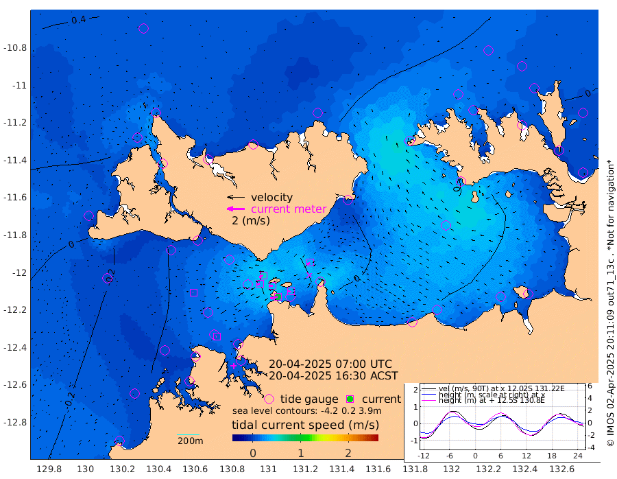 88cm/s -102T +4cm/s rms + 6cm/s 51T. Darwin_C1 52m 33cm/s -89T +4cm/s rms + 7cm/s -161T. Darwin_CW1 22m 32cm/s -109T +4cm/s rms + 8cm/s 61T. Darwin_CW2 34m 35cm/s -128T +3cm/s rms + 9cm/s 98T. Darwin_CW3 22m 35cm/s -90T +5cm/s rms + 7cm/s 88T. Darwin_C3 56m 49cm/s -115T +2cm/s rms + 9cm/s -126T. Darwin_CTbW 22m 9cm/s -94T +1cm/s rms + 1cm/s -47T. DARBGF 30m 8cm/s -98T +4cm/s rms + 3cm/s 80T. NRSDAR 19m 46cm Goodrich Bank -10cm Point Jenny -9cm Native Point -9cm Fish Reef -18cm Tapa Bay 25cm Point Fawcett (Offshore) -20cm Burge Point -30cm Munkunuwa 5cm Beagle A -40cm Parsons Bank -17cm Fenton Patches -35cm Hancox Shoal Area -37cm Nightcliff -28cm Darwin -9cm Charles Point Patches -11cm Glyde Point -4cm Chambers Bay -4cm Point Stuart -11cm Cape Hotham -7cm Christine Reef -7cm West Alligator Head 6cm East Field Island -5cm Two Hills Bay 8cm Camp Point -17cm Medina Inlet South 18cm South Barlow Point 33cm St. Asaph Bay 43cm Cape Van Dieman 38cm Snake Bay 44cm Cache Point 30cm Point Jahleel (Off) 12cm Cape Don 24cm Port Essington 18cm Smith Point - West 18cm NW Peacock Island 30cm North Of Jones Shoal 9cm Peacock Island 0cm Point David 12cm D'urville Point -4cm Copeland Island 6cm One Tree Point