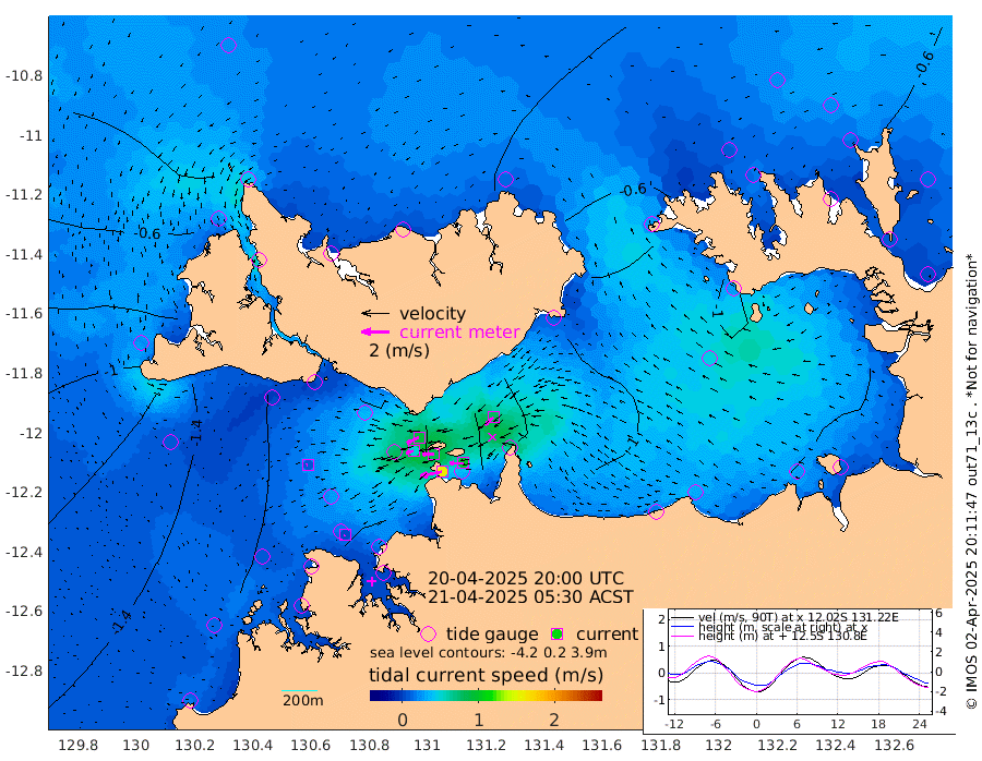 161cm/s -102T +4cm/s rms + 6cm/s 51T. Darwin_C1 52m 97cm/s -90T +4cm/s rms + 7cm/s -161T. Darwin_CW1 22m 53cm/s -105T +4cm/s rms + 8cm/s 61T. Darwin_CW2 34m 81cm/s -134T +3cm/s rms + 9cm/s 98T. Darwin_CW3 22m 85cm/s -90T +5cm/s rms + 7cm/s 88T. Darwin_C3 56m 95cm/s -115T +2cm/s rms + 9cm/s -126T. Darwin_CTbW 22m 8cm/s -119T +1cm/s rms + 1cm/s -47T. DARBGF 30m 7cm/s -161T +4cm/s rms + 3cm/s 80T. NRSDAR 19m -25cm Goodrich Bank -124cm Point Jenny -123cm Native Point -117cm Fish Reef -138cm Tapa Bay -67cm Point Fawcett (Offshore) -139cm Burge Point -111cm Munkunuwa -102cm Beagle A -141cm Parsons Bank -134cm Fenton Patches -147cm Hancox Shoal Area -148cm Nightcliff -156cm Darwin -145cm Charles Point Patches -131cm Glyde Point -122cm Chambers Bay -119cm Point Stuart -115cm Cape Hotham -123cm Christine Reef -126cm West Alligator Head -122cm East Field Island -109cm Two Hills Bay -109cm Camp Point -127cm Medina Inlet South -58cm South Barlow Point -41cm St. Asaph Bay -26cm Cape Van Dieman -32cm Snake Bay -32cm Cache Point -42cm Point Jahleel (Off) -76cm Cape Don -50cm Port Essington -52cm Smith Point - West -52cm NW Peacock Island -36cm North Of Jones Shoal -14cm Peacock Island -68cm Point David -56cm D'urville Point -68cm Copeland Island -65cm One Tree Point