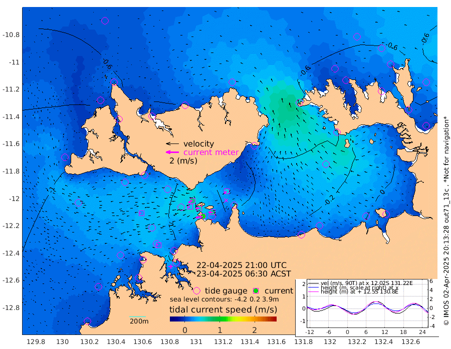 116cm/s -102T +4cm/s rms + 6cm/s 51T. Darwin_C1 52m 64cm/s -89T +4cm/s rms + 7cm/s -161T. Darwin_CW1 22m 40cm/s -106T +4cm/s rms + 8cm/s 61T. Darwin_CW2 34m 48cm/s -128T +3cm/s rms + 9cm/s 98T. Darwin_CW3 22m 55cm/s -91T +5cm/s rms + 7cm/s 88T. Darwin_C3 56m 70cm/s -115T +2cm/s rms + 9cm/s -126T. Darwin_CTbW 22m 28cm/s -91T +1cm/s rms + 1cm/s -47T. DARBGF 30m 25cm/s -63T +4cm/s rms + 3cm/s 80T. NRSDAR 19m -49cm Goodrich Bank -103cm Point Jenny -103cm Native Point -92cm Fish Reef -102cm Tapa Bay -79cm Point Fawcett (Offshore) -100cm Burge Point -92cm Munkunuwa -91cm Beagle A -97cm Parsons Bank -95cm Fenton Patches -91cm Hancox Shoal Area -95cm Nightcliff -95cm Darwin -98cm Charles Point Patches -63cm Glyde Point -32cm Chambers Bay -22cm Point Stuart -44cm Cape Hotham -41cm Christine Reef -18cm West Alligator Head -1cm East Field Island -38cm Two Hills Bay -37cm Camp Point -95cm Medina Inlet South -74cm South Barlow Point -63cm St. Asaph Bay -52cm Cape Van Dieman -53cm Snake Bay -53cm Cache Point -50cm Point Jahleel (Off) -59cm Cape Don -55cm Port Essington -57cm Smith Point - West -55cm NW Peacock Island -47cm North Of Jones Shoal -17cm Peacock Island -53cm Point David -58cm D'urville Point -51cm Copeland Island -53cm One Tree Point
