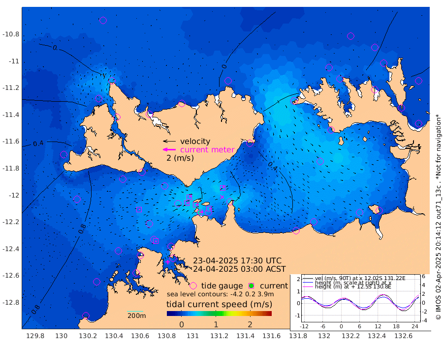60cm/s 78T +4cm/s rms + 6cm/s 51T. Darwin_C1 52m 32cm/s 85T +4cm/s rms + 7cm/s -161T. Darwin_CW1 22m 31cm/s 74T +4cm/s rms + 8cm/s 61T. Darwin_CW2 34m 34cm/s 44T +3cm/s rms + 9cm/s 98T. Darwin_CW3 22m 38cm/s 88T +5cm/s rms + 7cm/s 88T. Darwin_C3 56m 34cm/s 64T +2cm/s rms + 9cm/s -126T. Darwin_CTbW 22m 18cm/s 88T +1cm/s rms + 1cm/s -47T. DARBGF 30m 18cm/s 114T +4cm/s rms + 3cm/s 80T. NRSDAR 19m -14cm Goodrich Bank 85cm Point Jenny 83cm Native Point 80cm Fish Reef 95cm Tapa Bay 32cm Point Fawcett (Offshore) 91cm Burge Point 76cm Munkunuwa 69cm Beagle A 93cm Parsons Bank 95cm Fenton Patches 100cm Hancox Shoal Area 105cm Nightcliff 95cm Darwin 87cm Charles Point Patches 73cm Glyde Point 67cm Chambers Bay 54cm Point Stuart 65cm Cape Hotham 57cm Christine Reef 55cm West Alligator Head 47cm East Field Island 49cm Two Hills Bay 51cm Camp Point 77cm Medina Inlet South 19cm South Barlow Point 8cm St. Asaph Bay -10cm Cape Van Dieman -10cm Snake Bay -6cm Cache Point 4cm Point Jahleel (Off) 28cm Cape Don 11cm Port Essington 16cm Smith Point - West 15cm NW Peacock Island -1cm North Of Jones Shoal 2cm Peacock Island 38cm Point David 22cm D'urville Point 42cm Copeland Island 28cm One Tree Point