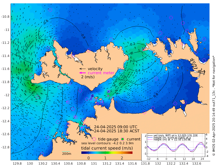 11cm/s 79T +4cm/s rms + 6cm/s 51T. Darwin_C1 52m 33cm/s 93T +4cm/s rms + 7cm/s -161T. Darwin_CW1 22m 20cm/s 69T +4cm/s rms + 8cm/s 61T. Darwin_CW2 34m 28cm/s 41T +3cm/s rms + 9cm/s 98T. Darwin_CW3 22m 47cm/s 91T +5cm/s rms + 7cm/s 88T. Darwin_C3 56m 1cm/s -174T +2cm/s rms + 9cm/s -126T. Darwin_CTbW 22m 34cm/s -80T +1cm/s rms + 1cm/s -47T. DARBGF 30m 42cm/s -53T +4cm/s rms + 3cm/s 80T. NRSDAR 19m -47cm Goodrich Bank 13cm Point Jenny 13cm Native Point 20cm Fish Reef 28cm Tapa Bay -31cm Point Fawcett (Offshore) 46cm Burge Point 19cm Munkunuwa -2cm Beagle A 38cm Parsons Bank 36cm Fenton Patches 47cm Hancox Shoal Area 49cm Nightcliff 64cm Darwin 46cm Charles Point Patches 69cm Glyde Point 97cm Chambers Bay 102cm Point Stuart 66cm Cape Hotham 85cm Christine Reef 116cm West Alligator Head 136cm East Field Island 65cm Two Hills Bay 78cm Camp Point 32cm Medina Inlet South -34cm South Barlow Point -42cm St. Asaph Bay -51cm Cape Van Dieman -47cm Snake Bay -48cm Cache Point -34cm Point Jahleel (Off) 0cm Cape Don -31cm Port Essington -40cm Smith Point - West -38cm NW Peacock Island -39cm North Of Jones Shoal -13cm Peacock Island -24cm Point David -40cm D'urville Point -22cm Copeland Island -21cm One Tree Point