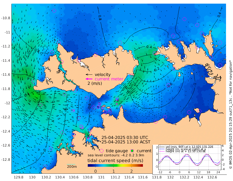 4cm/s 70T +4cm/s rms + 6cm/s 51T. Darwin_C1 52m 19cm/s -97T +4cm/s rms + 7cm/s -161T. Darwin_CW1 22m 4cm/s -97T +4cm/s rms + 8cm/s 61T. Darwin_CW2 34m 31cm/s -145T +3cm/s rms + 9cm/s 98T. Darwin_CW3 22m 33cm/s -89T +5cm/s rms + 7cm/s 88T. Darwin_C3 56m 18cm/s 63T +2cm/s rms + 9cm/s -126T. Darwin_CTbW 22m 45cm/s 98T +1cm/s rms + 1cm/s -47T. DARBGF 30m 50cm/s 128T +4cm/s rms + 3cm/s 80T. NRSDAR 19m 71cm Goodrich Bank 10cm Point Jenny 13cm Native Point 6cm Fish Reef -9cm Tapa Bay 59cm Point Fawcett (Offshore) -17cm Burge Point 8cm Munkunuwa 33cm Beagle A -23cm Parsons Bank -10cm Fenton Patches -42cm Hancox Shoal Area -32cm Nightcliff -45cm Darwin -27cm Charles Point Patches -63cm Glyde Point -111cm Chambers Bay -114cm Point Stuart -68cm Cape Hotham -94cm Christine Reef -130cm West Alligator Head -154cm East Field Island -70cm Two Hills Bay -80cm Camp Point -4cm Medina Inlet South 65cm South Barlow Point 71cm St. Asaph Bay 75cm Cape Van Dieman 75cm Snake Bay 69cm Cache Point 51cm Point Jahleel (Off) 9cm Cape Don 41cm Port Essington 47cm Smith Point - West 43cm NW Peacock Island 51cm North Of Jones Shoal 16cm Peacock Island 14cm Point David 43cm D'urville Point 8cm Copeland Island 17cm One Tree Point