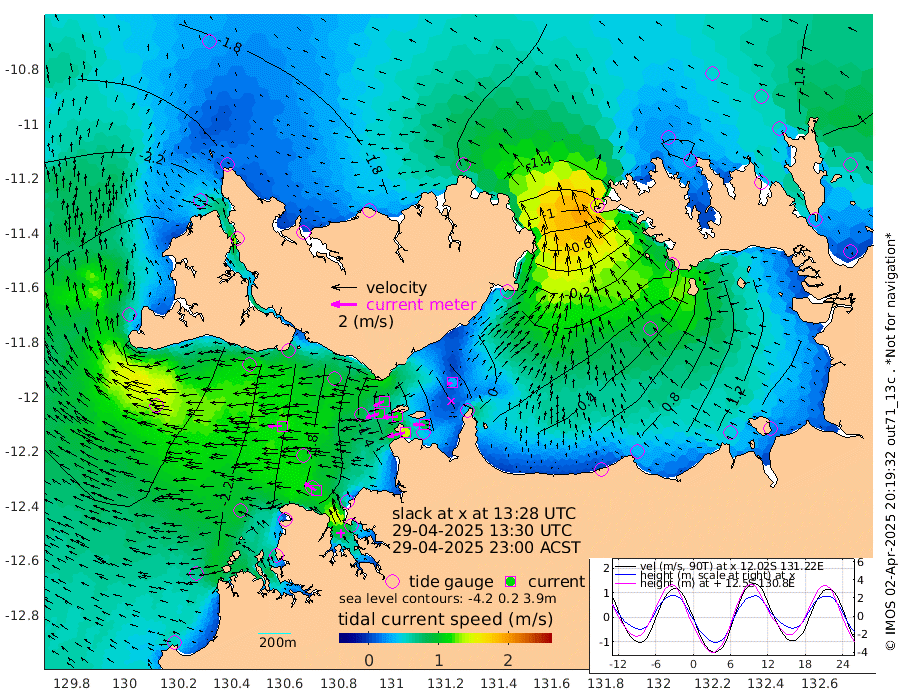 140cm/s -102T +4cm/s rms + 6cm/s 51T. Darwin_C1 52m 85cm/s -88T +4cm/s rms + 7cm/s -161T. Darwin_CW1 22m 102cm/s -108T +4cm/s rms + 8cm/s 61T. Darwin_CW2 34m 33cm/s -114T +3cm/s rms + 9cm/s 98T. Darwin_CW3 22m 115cm/s -93T +5cm/s rms + 7cm/s 88T. Darwin_C3 56m 88cm/s -116T +2cm/s rms + 9cm/s -126T. Darwin_CTbW 22m 107cm/s -90T +1cm/s rms + 1cm/s -47T. DARBGF 30m 101cm/s -57T +4cm/s rms + 3cm/s 80T. NRSDAR 19m -154cm Goodrich Bank -251cm Point Jenny -252cm Native Point -255cm Fish Reef -252cm Tapa Bay -242cm Point Fawcett (Offshore) -248cm Burge Point -253cm Munkunuwa -254cm Beagle A -227cm Parsons Bank -242cm Fenton Patches -201cm Hancox Shoal Area -228cm Nightcliff -230cm Darwin -254cm Charles Point Patches -104cm Glyde Point 29cm Chambers Bay 63cm Point Stuart -54cm Cape Hotham 18cm Christine Reef 88cm West Alligator Head 146cm East Field Island -8cm Two Hills Bay -13cm Camp Point -253cm Medina Inlet South -227cm South Barlow Point -209cm St. Asaph Bay -164cm Cape Van Dieman -166cm Snake Bay -158cm Cache Point -139cm Point Jahleel (Off) -115cm Cape Don -136cm Port Essington -141cm Smith Point - West -128cm NW Peacock Island -136cm North Of Jones Shoal -47cm Peacock Island -94cm Point David -133cm D'urville Point -86cm Copeland Island -102cm One Tree Point
