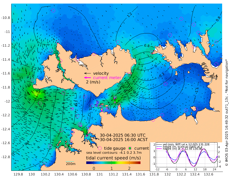 66cm/s -101T +4cm/s rms + 6cm/s 51T. Darwin_C1 52m 63cm/s -92T +4cm/s rms + 7cm/s -161T. Darwin_CW1 22m 19cm/s -109T +4cm/s rms + 8cm/s 61T. Darwin_CW2 34m 66cm/s -137T +3cm/s rms + 9cm/s 98T. Darwin_CW3 22m 59cm/s -90T +5cm/s rms + 7cm/s 88T. Darwin_C3 56m 21cm/s -114T +2cm/s rms + 9cm/s -126T. Darwin_CTbW 22m 54cm/s 98T +1cm/s rms + 1cm/s -47T. DARBGF 30m 58cm/s 131T +4cm/s rms + 3cm/s 80T. NRSDAR 19m 122cm Goodrich Bank 26cm Point Jenny 30cm Native Point 22cm Fish Reef 8cm Tapa Bay 98cm Point Fawcett (Offshore) -6cm Burge Point 10cm Munkunuwa 56cm Beagle A -19cm Parsons Bank 1cm Fenton Patches -34cm Hancox Shoal Area -25cm Nightcliff -28cm Darwin 10cm Charles Point Patches -60cm Glyde Point -125cm Chambers Bay -143cm Point Stuart -76cm Cape Hotham -113cm Christine Reef -170cm West Alligator Head -193cm East Field Island -85cm Two Hills Bay -72cm Camp Point 14cm Medina Inlet South 107cm South Barlow Point 116cm St. Asaph Bay 126cm Cape Van Dieman 125cm Snake Bay 117cm Cache Point 88cm Point Jahleel (Off) 34cm Cape Don 86cm Port Essington 85cm Smith Point - West 84cm NW Peacock Island 99cm North Of Jones Shoal 33cm Peacock Island 53cm Point David 83cm D'urville Point 45cm Copeland Island 58cm One Tree Point