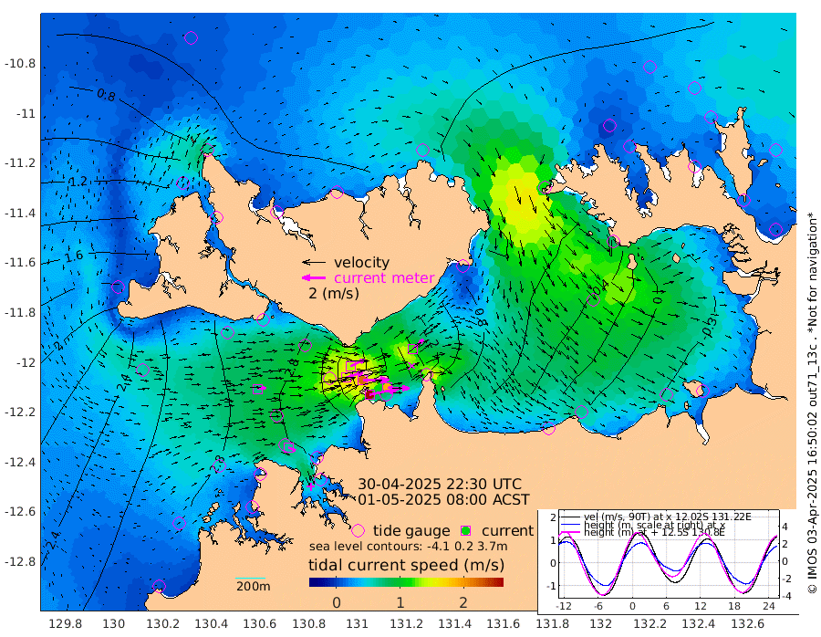 261cm/s 78T +4cm/s rms + 6cm/s 51T. Darwin_C1 52m 188cm/s 92T +4cm/s rms + 7cm/s -161T. Darwin_CW1 22m 151cm/s 73T +4cm/s rms + 8cm/s 61T. Darwin_CW2 34m 122cm/s 48T +3cm/s rms + 9cm/s 98T. Darwin_CW3 22m 222cm/s 89T +5cm/s rms + 7cm/s 88T. Darwin_C3 56m 136cm/s 66T +2cm/s rms + 9cm/s -126T. Darwin_CTbW 22m 71cm/s 84T +1cm/s rms + 1cm/s -47T. DARBGF 30m 65cm/s 111T +4cm/s rms + 3cm/s 80T. NRSDAR 19m 35cm Goodrich Bank 263cm Point Jenny 261cm Native Point 278cm Fish Reef 290cm Tapa Bay 168cm Point Fawcett (Offshore) 303cm Burge Point 295cm Munkunuwa 229cm Beagle A 298cm Parsons Bank 284cm Fenton Patches 281cm Hancox Shoal Area 302cm Nightcliff 316cm Darwin 295cm Charles Point Patches 196cm Glyde Point 107cm Chambers Bay 92cm Point Stuart 153cm Cape Hotham 104cm Christine Reef 94cm West Alligator Head 50cm East Field Island 109cm Two Hills Bay 99cm Camp Point 290cm Medina Inlet South 144cm South Barlow Point 107cm St. Asaph Bay 43cm Cape Van Dieman 50cm Snake Bay 44cm Cache Point 58cm Point Jahleel (Off) 95cm Cape Don 60cm Port Essington 64cm Smith Point - West 51cm NW Peacock Island 42cm North Of Jones Shoal 15cm Peacock Island 52cm Point David 60cm D'urville Point 51cm Copeland Island 55cm One Tree Point