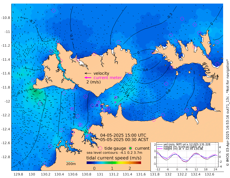 47cm/s 80T +4cm/s rms + 6cm/s 51T. Darwin_C1 52m 14cm/s 86T +4cm/s rms + 7cm/s -161T. Darwin_CW1 22m 4cm/s 45T +4cm/s rms + 8cm/s 61T. Darwin_CW2 34m 36cm/s 44T +3cm/s rms + 9cm/s 98T. Darwin_CW3 22m 5cm/s 102T +5cm/s rms + 7cm/s 88T. Darwin_C3 56m 24cm/s 63T +2cm/s rms + 9cm/s -126T. Darwin_CTbW 22m 25cm/s -86T +1cm/s rms + 1cm/s -47T. DARBGF 30m 33cm/s -54T +4cm/s rms + 3cm/s 80T. NRSDAR 19m -67cm Goodrich Bank -14cm Point Jenny -20cm Native Point -3cm Fish Reef -7cm Tapa Bay -49cm Point Fawcett (Offshore) 0cm Burge Point -18cm Munkunuwa -31cm Beagle A 17cm Parsons Bank -3cm Fenton Patches 23cm Hancox Shoal Area 10cm Nightcliff 18cm Darwin -1cm Charles Point Patches 47cm Glyde Point 92cm Chambers Bay 107cm Point Stuart 64cm Cape Hotham 73cm Christine Reef 119cm West Alligator Head 131cm East Field Island 74cm Two Hills Bay 55cm Camp Point -10cm Medina Inlet South -58cm South Barlow Point -67cm St. Asaph Bay -65cm Cape Van Dieman -64cm Snake Bay -54cm Cache Point -37cm Point Jahleel (Off) 7cm Cape Don -18cm Port Essington -19cm Smith Point - West -13cm NW Peacock Island -31cm North Of Jones Shoal -7cm Peacock Island 24cm Point David -8cm D'urville Point 31cm Copeland Island 18cm One Tree Point