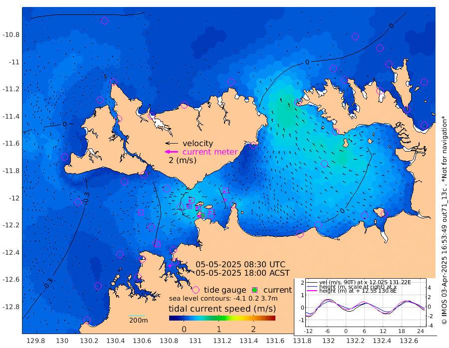 82cm/s -100T +4cm/s rms + 6cm/s 51T. Darwin_C1 52m 36cm/s -90T +4cm/s rms + 7cm/s -161T. Darwin_CW1 22m 27cm/s -106T +4cm/s rms + 8cm/s 61T. Darwin_CW2 34m 33cm/s -132T +3cm/s rms + 9cm/s 98T. Darwin_CW3 22m 32cm/s -91T +5cm/s rms + 7cm/s 88T. Darwin_C3 56m 49cm/s -116T +2cm/s rms + 9cm/s -126T. Darwin_CTbW 22m 17cm/s -90T +1cm/s rms + 1cm/s -47T. DARBGF 30m 17cm/s -68T +4cm/s rms + 3cm/s 80T. NRSDAR 19m 24cm Goodrich Bank -32cm Point Jenny -28cm Native Point -43cm Fish Reef -34cm Tapa Bay -9cm Point Fawcett (Offshore) -34cm Burge Point -37cm Munkunuwa -27cm Beagle A -45cm Parsons Bank -39cm Fenton Patches -42cm Hancox Shoal Area -44cm Nightcliff -40cm Darwin -30cm Charles Point Patches -30cm Glyde Point -29cm Chambers Bay -30cm Point Stuart -31cm Cape Hotham -22cm Christine Reef -35cm West Alligator Head -26cm East Field Island -29cm Two Hills Bay -8cm Camp Point -35cm Medina Inlet South -2cm South Barlow Point 8cm St. Asaph Bay 21cm Cape Van Dieman 20cm Snake Bay 16cm Cache Point 8cm Point Jahleel (Off) -10cm Cape Don 2cm Port Essington -5cm Smith Point - West -1cm NW Peacock Island 8cm North Of Jones Shoal 1cm Peacock Island -6cm Point David -6cm D'urville Point -10cm Copeland Island -6cm One Tree Point