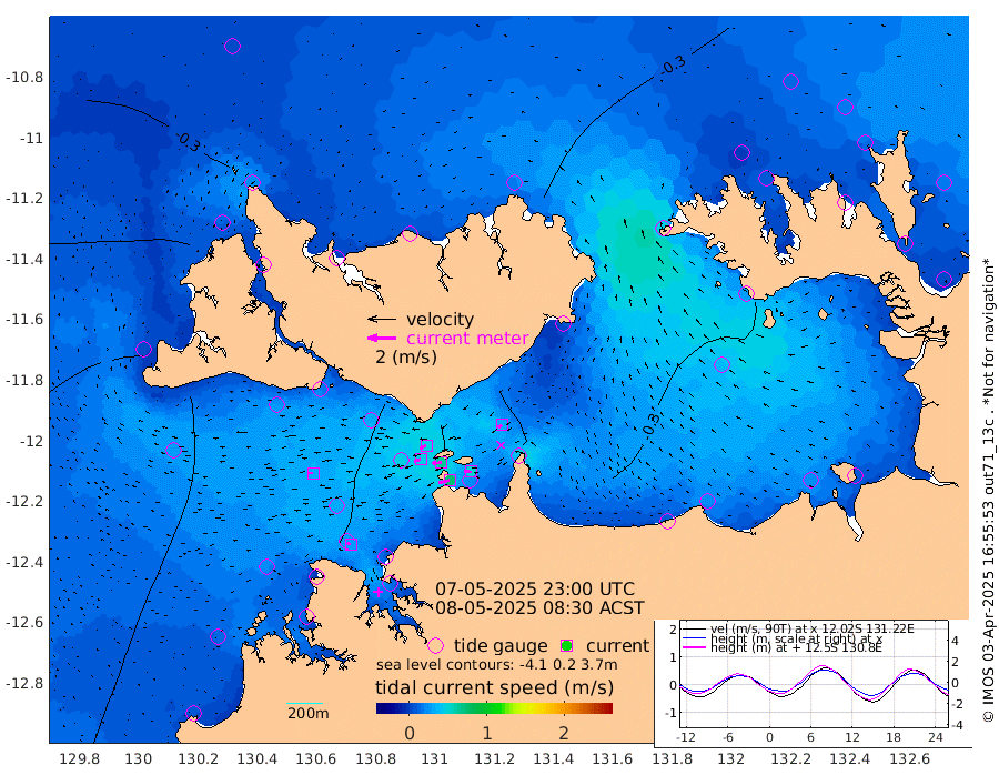 77cm/s -102T +4cm/s rms + 6cm/s 51T. Darwin_C1 52m 51cm/s -89T +4cm/s rms + 7cm/s -161T. Darwin_CW1 22m 48cm/s -107T +4cm/s rms + 8cm/s 61T. Darwin_CW2 34m 33cm/s -127T +3cm/s rms + 9cm/s 98T. Darwin_CW3 22m 66cm/s -92T +5cm/s rms + 7cm/s 88T. Darwin_C3 56m 47cm/s -115T +2cm/s rms + 9cm/s -126T. Darwin_CTbW 22m 31cm/s -90T +1cm/s rms + 1cm/s -47T. DARBGF 30m 27cm/s -63T +4cm/s rms + 3cm/s 80T. NRSDAR 19m -10cm Goodrich Bank -82cm Point Jenny -82cm Native Point -87cm Fish Reef -92cm Tapa Bay -59cm Point Fawcett (Offshore) -83cm Burge Point -86cm Munkunuwa -66cm Beagle A -86cm Parsons Bank -78cm Fenton Patches -81cm Hancox Shoal Area -86cm Nightcliff -92cm Darwin -90cm Charles Point Patches -59cm Glyde Point -35cm Chambers Bay -27cm Point Stuart -45cm Cape Hotham -19cm Christine Reef -25cm West Alligator Head -8cm East Field Island -33cm Two Hills Bay -29cm Camp Point -88cm Medina Inlet South -43cm South Barlow Point -32cm St. Asaph Bay -16cm Cape Van Dieman -18cm Snake Bay -15cm Cache Point -18cm Point Jahleel (Off) -35cm Cape Don -26cm Port Essington -24cm Smith Point - West -21cm NW Peacock Island -17cm North Of Jones Shoal -7cm Peacock Island -34cm Point David -26cm D'urville Point -33cm Copeland Island -32cm One Tree Point