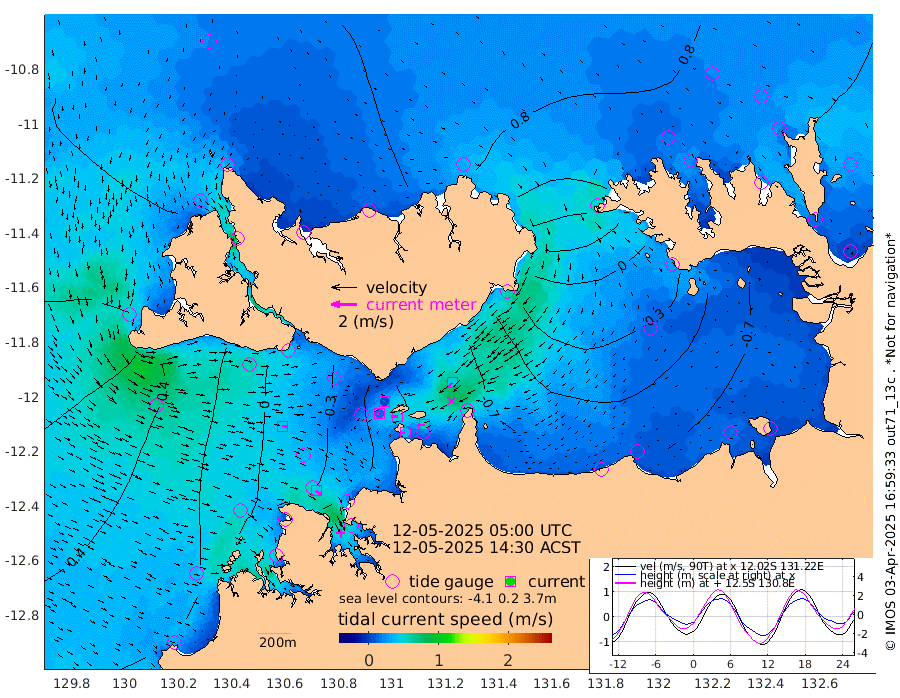 35cm/s -100T +4cm/s rms + 6cm/s 51T. Darwin_C1 52m 55cm/s -91T +4cm/s rms + 7cm/s -161T. Darwin_CW1 22m 12cm/s -105T +4cm/s rms + 8cm/s 61T. Darwin_CW2 34m 48cm/s -138T +3cm/s rms + 9cm/s 98T. Darwin_CW3 22m 51cm/s -90T +5cm/s rms + 7cm/s 88T. Darwin_C3 56m 3cm/s 50T +2cm/s rms + 9cm/s -126T. Darwin_CTbW 22m 42cm/s 98T +1cm/s rms + 1cm/s -47T. DARBGF 30m 46cm/s 130T +4cm/s rms + 3cm/s 80T. NRSDAR 19m 89cm Goodrich Bank 31cm Point Jenny 35cm Native Point 19cm Fish Reef 15cm Tapa Bay 72cm Point Fawcett (Offshore) 9cm Burge Point 16cm Munkunuwa 54cm Beagle A -4cm Parsons Bank 15cm Fenton Patches -16cm Hancox Shoal Area 0cm Nightcliff -18cm Darwin 4cm Charles Point Patches -41cm Glyde Point -88cm Chambers Bay -105cm Point Stuart -52cm Cape Hotham -71cm Christine Reef -124cm West Alligator Head -143cm East Field Island -60cm Two Hills Bay -50cm Camp Point 15cm Medina Inlet South 82cm South Barlow Point 87cm St. Asaph Bay 92cm Cape Van Dieman 93cm Snake Bay 86cm Cache Point 66cm Point Jahleel (Off) 27cm Cape Don 58cm Port Essington 62cm Smith Point - West 61cm NW Peacock Island 70cm North Of Jones Shoal 24cm Peacock Island 39cm Point David 60cm D'urville Point 33cm Copeland Island 41cm One Tree Point