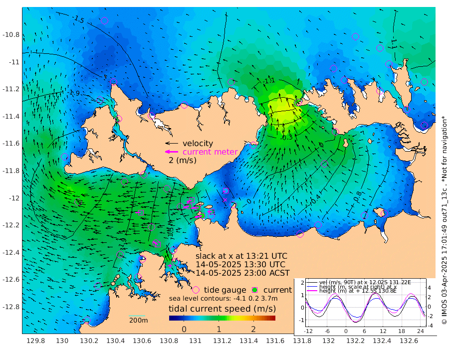 119cm/s -103T +4cm/s rms + 6cm/s 51T. Darwin_C1 52m 64cm/s -87T +4cm/s rms + 7cm/s -161T. Darwin_CW1 22m 85cm/s -108T +4cm/s rms + 8cm/s 61T. Darwin_CW2 34m 31cm/s -117T +3cm/s rms + 9cm/s 98T. Darwin_CW3 22m 95cm/s -92T +5cm/s rms + 7cm/s 88T. Darwin_C3 56m 76cm/s -116T +2cm/s rms + 9cm/s -126T. Darwin_CTbW 22m 82cm/s -91T +1cm/s rms + 1cm/s -47T. DARBGF 30m 78cm/s -58T +4cm/s rms + 3cm/s 80T. NRSDAR 19m -127cm Goodrich Bank -221cm Point Jenny -225cm Native Point -211cm Fish Reef -226cm Tapa Bay -195cm Point Fawcett (Offshore) -219cm Burge Point -219cm Munkunuwa -221cm Beagle A -198cm Parsons Bank -220cm Fenton Patches -184cm Hancox Shoal Area -210cm Nightcliff -202cm Darwin -219cm Charles Point Patches -98cm Glyde Point 11cm Chambers Bay 45cm Point Stuart -52cm Cape Hotham -4cm Christine Reef 63cm West Alligator Head 108cm East Field Island -10cm Two Hills Bay -26cm Camp Point -216cm Medina Inlet South -187cm South Barlow Point -172cm St. Asaph Bay -135cm Cape Van Dieman -137cm Snake Bay -127cm Cache Point -114cm Point Jahleel (Off) -91cm Cape Don -103cm Port Essington -109cm Smith Point - West -99cm NW Peacock Island -100cm North Of Jones Shoal -34cm Peacock Island -73cm Point David -103cm D'urville Point -65cm Copeland Island -73cm One Tree Point