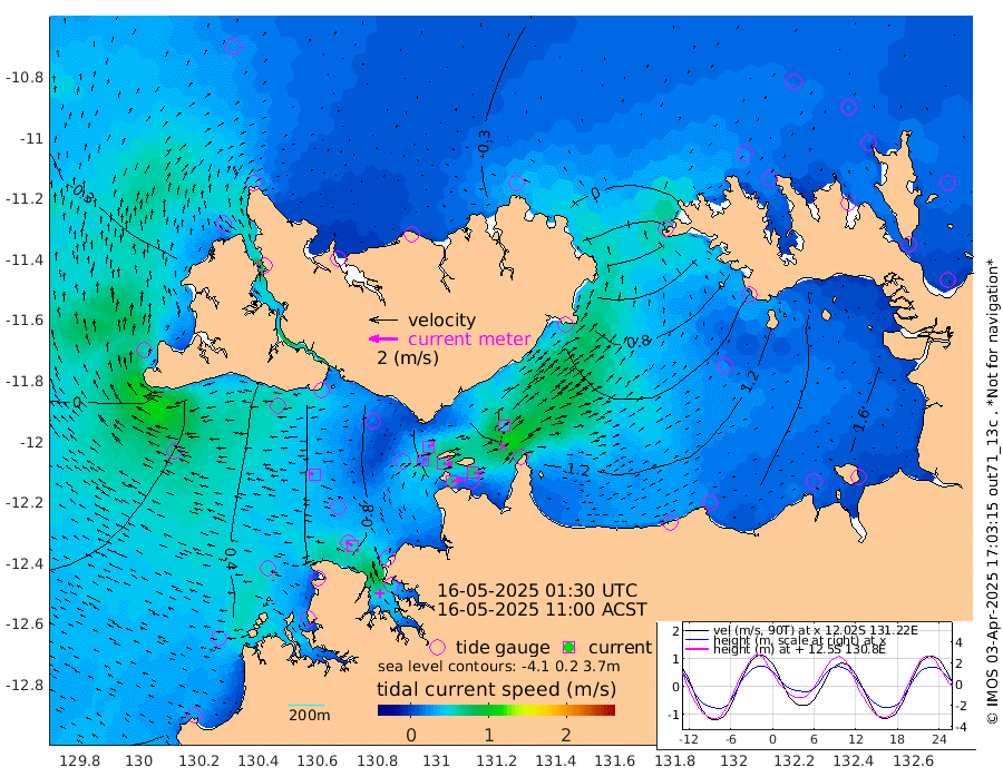 71cm/s 79T +4cm/s rms + 6cm/s 51T. Darwin_C1 52m 72cm/s 90T +4cm/s rms + 7cm/s -161T. Darwin_CW1 22m 29cm/s 69T +4cm/s rms + 8cm/s 61T. Darwin_CW2 34m 56cm/s 45T +3cm/s rms + 9cm/s 98T. Darwin_CW3 22m 63cm/s 92T +5cm/s rms + 7cm/s 88T. Darwin_C3 56m 40cm/s 67T +2cm/s rms + 9cm/s -126T. Darwin_CTbW 22m 37cm/s -79T +1cm/s rms + 1cm/s -47T. DARBGF 30m 54cm/s -52T +4cm/s rms + 3cm/s 80T. NRSDAR 19m -21cm Goodrich Bank 38cm Point Jenny 35cm Native Point 45cm Fish Reef 50cm Tapa Bay 1cm Point Fawcett (Offshore) 56cm Burge Point 21cm Munkunuwa 26cm Beagle A 50cm Parsons Bank 57cm Fenton Patches 72cm Hancox Shoal Area 71cm Nightcliff 80cm Darwin 65cm Charles Point Patches 107cm Glyde Point 165cm Chambers Bay 174cm Point Stuart 115cm Cape Hotham 150cm Christine Reef 197cm West Alligator Head 226cm East Field Island 128cm Two Hills Bay 122cm Camp Point 47cm Medina Inlet South -18cm South Barlow Point -18cm St. Asaph Bay -28cm Cape Van Dieman -26cm Snake Bay -14cm Cache Point 0cm Point Jahleel (Off) 37cm Cape Don -4cm Port Essington -5cm Smith Point - West -6cm NW Peacock Island -7cm North Of Jones Shoal -3cm Peacock Island -1cm Point David -9cm D'urville Point 2cm Copeland Island 5cm One Tree Point