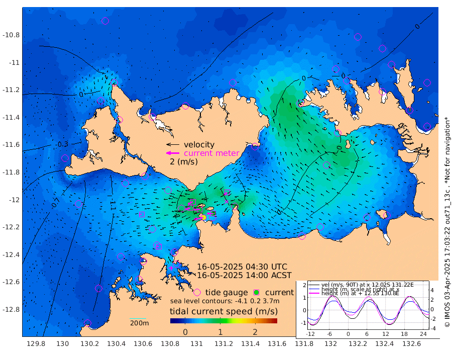 151cm/s -102T +4cm/s rms + 6cm/s 51T. Darwin_C1 52m 93cm/s -89T +4cm/s rms + 7cm/s -161T. Darwin_CW1 22m 79cm/s -109T +4cm/s rms + 8cm/s 61T. Darwin_CW2 34m 62cm/s -129T +3cm/s rms + 9cm/s 98T. Darwin_CW3 22m 93cm/s -91T +5cm/s rms + 7cm/s 88T. Darwin_C3 56m 85cm/s -115T +2cm/s rms + 9cm/s -126T. Darwin_CTbW 22m 32cm/s -94T +1cm/s rms + 1cm/s -47T. DARBGF 30m 26cm/s -75T +4cm/s rms + 3cm/s 80T. NRSDAR 19m 45cm Goodrich Bank -80cm Point Jenny -79cm Native Point -85cm Fish Reef -98cm Tapa Bay -13cm Point Fawcett (Offshore) -105cm Burge Point -111cm Munkunuwa -56cm Beagle A -121cm Parsons Bank -98cm Fenton Patches -112cm Hancox Shoal Area -122cm Nightcliff -119cm Darwin -96cm Charles Point Patches -60cm Glyde Point -18cm Chambers Bay -8cm Point Stuart -41cm Cape Hotham -20cm Christine Reef -8cm West Alligator Head 17cm East Field Island -16cm Two Hills Bay -12cm Camp Point -98cm Medina Inlet South -17cm South Barlow Point 10cm St. Asaph Bay 39cm Cape Van Dieman 33cm Snake Bay 43cm Cache Point 26cm Point Jahleel (Off) -4cm Cape Don 16cm Port Essington 11cm Smith Point - West 14cm NW Peacock Island 28cm North Of Jones Shoal 7cm Peacock Island -5cm Point David 6cm D'urville Point -10cm Copeland Island 0cm One Tree Point