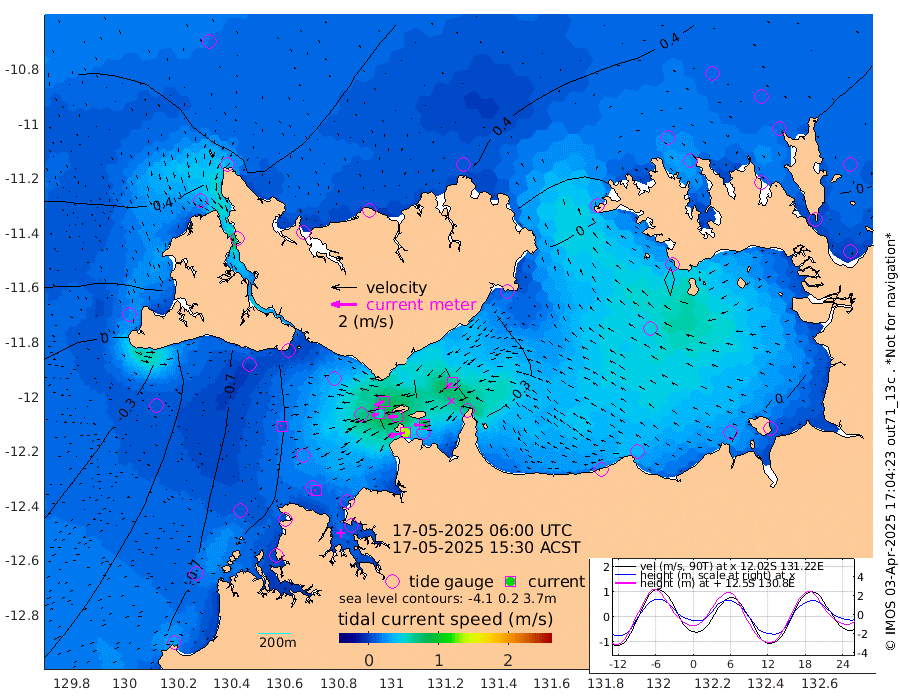 137cm/s -101T +4cm/s rms + 6cm/s 51T. Darwin_C1 52m 84cm/s -90T +4cm/s rms + 7cm/s -161T. Darwin_CW1 22m 55cm/s -107T +4cm/s rms + 8cm/s 61T. Darwin_CW2 34m 64cm/s -134T +3cm/s rms + 9cm/s 98T. Darwin_CW3 22m 75cm/s -90T +5cm/s rms + 7cm/s 88T. Darwin_C3 56m 78cm/s -115T +2cm/s rms + 9cm/s -126T. Darwin_CTbW 22m 9cm/s -106T +1cm/s rms + 1cm/s -47T. DARBGF 30m 10cm/s -112T +4cm/s rms + 3cm/s 80T. NRSDAR 19m 68cm Goodrich Bank -45cm Point Jenny -42cm Native Point -50cm Fish Reef -62cm Tapa Bay 21cm Point Fawcett (Offshore) -70cm Burge Point -69cm Munkunuwa -21cm Beagle A -86cm Parsons Bank -65cm Fenton Patches -86cm Hancox Shoal Area -94cm Nightcliff -86cm Darwin -58cm Charles Point Patches -59cm Glyde Point -56cm Chambers Bay -53cm Point Stuart -53cm Cape Hotham -53cm Christine Reef -63cm West Alligator Head -53cm East Field Island -41cm Two Hills Bay -31cm Camp Point -60cm Medina Inlet South 21cm South Barlow Point 42cm St. Asaph Bay 66cm Cape Van Dieman 60cm Snake Bay 64cm Cache Point 43cm Point Jahleel (Off) 6cm Cape Don 37cm Port Essington 30cm Smith Point - West 33cm NW Peacock Island 45cm North Of Jones Shoal 14cm Peacock Island 11cm Point David 26cm D'urville Point 5cm Copeland Island 15cm One Tree Point