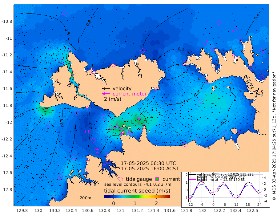 119cm/s -101T +4cm/s rms + 6cm/s 51T. Darwin_C1 52m 73cm/s -91T +4cm/s rms + 7cm/s -161T. Darwin_CW1 22m 41cm/s -107T +4cm/s rms + 8cm/s 61T. Darwin_CW2 34m 61cm/s -135T +3cm/s rms + 9cm/s 98T. Darwin_CW3 22m 62cm/s -90T +5cm/s rms + 7cm/s 88T. Darwin_C3 56m 67cm/s -115T +2cm/s rms + 9cm/s -126T. Darwin_CTbW 22m 5cm/s 129T +1cm/s rms + 1cm/s -47T. DARBGF 30m 10cm/s 174T +4cm/s rms + 3cm/s 80T. NRSDAR 19m 79cm Goodrich Bank -23cm Point Jenny -20cm Native Point -28cm Fish Reef -39cm Tapa Bay 39cm Point Fawcett (Offshore) -46cm Burge Point -42cm Munkunuwa -1cm Beagle A -61cm Parsons Bank -44cm Fenton Patches -67cm Hancox Shoal Area -73cm Nightcliff -64cm Darwin -35cm Charles Point Patches -54cm Glyde Point -72cm Chambers Bay -71cm Point Stuart -55cm Cape Hotham -65cm Christine Reef -85cm West Alligator Head -84cm East Field Island -49cm Two Hills Bay -37cm Camp Point -37cm Medina Inlet South 41cm South Barlow Point 58cm St. Asaph Bay 78cm Cape Van Dieman 74cm Snake Bay 75cm Cache Point 52cm Point Jahleel (Off) 13cm Cape Don 48cm Port Essington 42cm Smith Point - West 44cm NW Peacock Island 54cm North Of Jones Shoal 17cm Peacock Island 23cm Point David 39cm D'urville Point 17cm Copeland Island 26cm One Tree Point