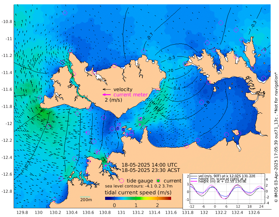 49cm/s 80T +4cm/s rms + 6cm/s 51T. Darwin_C1 52m 12cm/s 94T +4cm/s rms + 7cm/s -161T. Darwin_CW1 22m 4cm/s 22T +4cm/s rms + 8cm/s 61T. Darwin_CW2 34m 46cm/s 42T +3cm/s rms + 9cm/s 98T. Darwin_CW3 22m 7cm/s 99T +5cm/s rms + 7cm/s 88T. Darwin_C3 56m 23cm/s 64T +2cm/s rms + 9cm/s -126T. Darwin_CTbW 22m 41cm/s -86T +1cm/s rms + 1cm/s -47T. DARBGF 30m 49cm/s -54T +4cm/s rms + 3cm/s 80T. NRSDAR 19m -93cm Goodrich Bank -45cm Point Jenny -47cm Native Point -42cm Fish Reef -27cm Tapa Bay -89cm Point Fawcett (Offshore) -29cm Burge Point -43cm Munkunuwa -67cm Beagle A -5cm Parsons Bank -28cm Fenton Patches 13cm Hancox Shoal Area 1cm Nightcliff 1cm Darwin -25cm Charles Point Patches 37cm Glyde Point 96cm Chambers Bay 107cm Point Stuart 57cm Cape Hotham 76cm Christine Reef 123cm West Alligator Head 142cm East Field Island 66cm Two Hills Bay 57cm Camp Point -37cm Medina Inlet South -90cm South Barlow Point -99cm St. Asaph Bay -94cm Cape Van Dieman -87cm Snake Bay -86cm Cache Point -62cm Point Jahleel (Off) -17cm Cape Don -48cm Port Essington -47cm Smith Point - West -39cm NW Peacock Island -58cm North Of Jones Shoal -17cm Peacock Island 9cm Point David -35cm D'urville Point 17cm Copeland Island -3cm One Tree Point