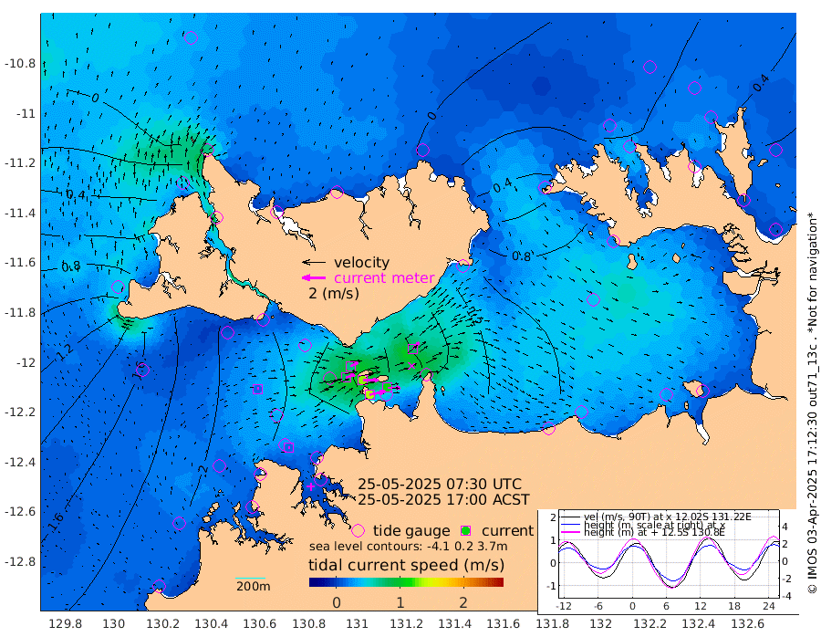 136cm/s 78T +4cm/s rms + 6cm/s 51T. Darwin_C1 52m 110cm/s 91T +4cm/s rms + 7cm/s -161T. Darwin_CW1 22m 81cm/s 73T +4cm/s rms + 8cm/s 61T. Darwin_CW2 34m 79cm/s 44T +3cm/s rms + 9cm/s 98T. Darwin_CW3 22m 129cm/s 89T +5cm/s rms + 7cm/s 88T. Darwin_C3 56m 69cm/s 65T +2cm/s rms + 9cm/s -126T. Darwin_CTbW 22m 14cm/s 68T +1cm/s rms + 1cm/s -47T. DARBGF 30m 13cm/s 84T +4cm/s rms + 3cm/s 80T. NRSDAR 19m -32cm Goodrich Bank 144cm Point Jenny 145cm Native Point 157cm Fish Reef 170cm Tapa Bay 45cm Point Fawcett (Offshore) 194cm Burge Point 161cm Munkunuwa 121cm Beagle A 191cm Parsons Bank 184cm Fenton Patches 184cm Hancox Shoal Area 193cm Nightcliff 210cm Darwin 177cm Charles Point Patches 158cm Glyde Point 120cm Chambers Bay 125cm Point Stuart 134cm Cape Hotham 111cm Christine Reef 133cm West Alligator Head 123cm East Field Island 106cm Two Hills Bay 110cm Camp Point 166cm Medina Inlet South 39cm South Barlow Point 4cm St. Asaph Bay -27cm Cape Van Dieman -17cm Snake Bay -26cm Cache Point -3cm Point Jahleel (Off) 49cm Cape Don 9cm Port Essington 6cm Smith Point - West 6cm NW Peacock Island -19cm North Of Jones Shoal -4cm Peacock Island 41cm Point David 14cm D'urville Point 44cm Copeland Island 32cm One Tree Point