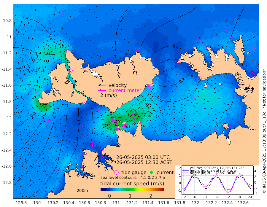 124cm/s -101T +4cm/s rms + 6cm/s 51T. Darwin_C1 52m 116cm/s -91T +4cm/s rms + 7cm/s -161T. Darwin_CW1 22m 65cm/s -107T +4cm/s rms + 8cm/s 61T. Darwin_CW2 34m 67cm/s -135T +3cm/s rms + 9cm/s 98T. Darwin_CW3 22m 111cm/s -91T +5cm/s rms + 7cm/s 88T. Darwin_C3 56m 63cm/s -115T +2cm/s rms + 9cm/s -126T. Darwin_CTbW 22m 6cm/s 153T +1cm/s rms + 1cm/s -47T. DARBGF 30m 11cm/s 170T +4cm/s rms + 3cm/s 80T. NRSDAR 19m 85cm Goodrich Bank -80cm Point Jenny -77cm Native Point -86cm Fish Reef -104cm Tapa Bay 15cm Point Fawcett (Offshore) -120cm Burge Point -105cm Munkunuwa -44cm Beagle A -126cm Parsons Bank -107cm Fenton Patches -128cm Hancox Shoal Area -132cm Nightcliff -137cm Darwin -104cm Charles Point Patches -106cm Glyde Point -104cm Chambers Bay -106cm Point Stuart -94cm Cape Hotham -94cm Christine Reef -120cm West Alligator Head -116cm East Field Island -75cm Two Hills Bay -74cm Camp Point -98cm Medina Inlet South 27cm South Barlow Point 51cm St. Asaph Bay 82cm Cape Van Dieman 80cm Snake Bay 80cm Cache Point 54cm Point Jahleel (Off) 1cm Cape Don 47cm Port Essington 47cm Smith Point - West 50cm NW Peacock Island 67cm North Of Jones Shoal 21cm Peacock Island 18cm Point David 44cm D'urville Point 12cm Copeland Island 25cm One Tree Point