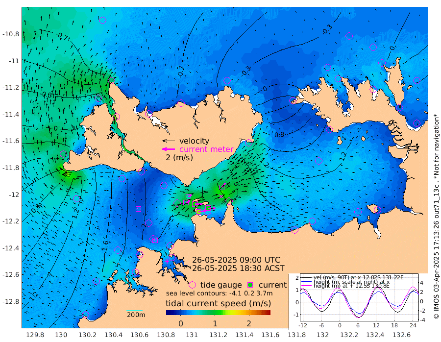 133cm/s 78T +4cm/s rms + 6cm/s 51T. Darwin_C1 52m 113cm/s 92T +4cm/s rms + 7cm/s -161T. Darwin_CW1 22m 70cm/s 71T +4cm/s rms + 8cm/s 61T. Darwin_CW2 34m 89cm/s 43T +3cm/s rms + 9cm/s 98T. Darwin_CW3 22m 119cm/s 90T +5cm/s rms + 7cm/s 88T. Darwin_C3 56m 62cm/s 65T +2cm/s rms + 9cm/s -126T. Darwin_CTbW 22m 20cm/s -69T +1cm/s rms + 1cm/s -47T. DARBGF 30m 28cm/s -43T +4cm/s rms + 3cm/s 80T. NRSDAR 19m -78cm Goodrich Bank 89cm Point Jenny 89cm Native Point 105cm Fish Reef 120cm Tapa Bay -18cm Point Fawcett (Offshore) 147cm Burge Point 110cm Munkunuwa 60cm Beagle A 154cm Parsons Bank 136cm Fenton Patches 154cm Hancox Shoal Area 152cm Nightcliff 176cm Darwin 134cm Charles Point Patches 150cm Glyde Point 143cm Chambers Bay 161cm Point Stuart 138cm Cape Hotham 131cm Christine Reef 176cm West Alligator Head 181cm East Field Island 119cm Two Hills Bay 122cm Camp Point 117cm Medina Inlet South -20cm South Barlow Point -55cm St. Asaph Bay -76cm Cape Van Dieman -66cm Snake Bay -73cm Cache Point -42cm Point Jahleel (Off) 25cm Cape Don -25cm Port Essington -29cm Smith Point - West -25cm NW Peacock Island -56cm North Of Jones Shoal -16cm Peacock Island 25cm Point David -18cm D'urville Point 31cm Copeland Island 13cm One Tree Point