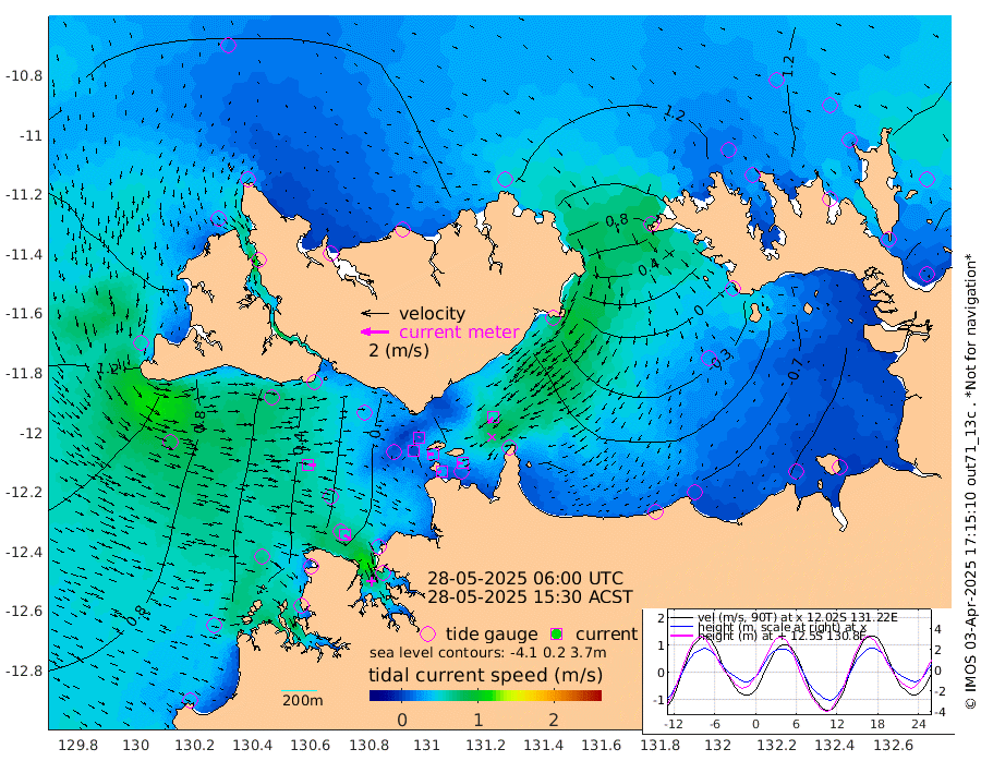 26cm/s -101T +4cm/s rms + 6cm/s 51T. Darwin_C1 52m 41cm/s -89T +4cm/s rms + 7cm/s -161T. Darwin_CW1 22m 2cm/s -136T +4cm/s rms + 8cm/s 61T. Darwin_CW2 34m 54cm/s -139T +3cm/s rms + 9cm/s 98T. Darwin_CW3 22m 31cm/s -89T +5cm/s rms + 7cm/s 88T. Darwin_C3 56m 7cm/s 51T +2cm/s rms + 9cm/s -126T. Darwin_CTbW 22m 56cm/s 96T +1cm/s rms + 1cm/s -47T. DARBGF 30m 58cm/s 129T +4cm/s rms + 3cm/s 80T. NRSDAR 19m 117cm Goodrich Bank 58cm Point Jenny 61cm Native Point 57cm Fish Reef 45cm Tapa Bay 111cm Point Fawcett (Offshore) 34cm Burge Point 45cm Munkunuwa 79cm Beagle A 27cm Parsons Bank 37cm Fenton Patches 9cm Hancox Shoal Area 16cm Nightcliff 20cm Darwin 50cm Charles Point Patches -22cm Glyde Point -94cm Chambers Bay -108cm Point Stuart -41cm Cape Hotham -84cm Christine Reef -133cm West Alligator Head -161cm East Field Island -53cm Two Hills Bay -46cm Camp Point 51cm Medina Inlet South 117cm South Barlow Point 118cm St. Asaph Bay 122cm Cape Van Dieman 125cm Snake Bay 115cm Cache Point 92cm Point Jahleel (Off) 53cm Cape Don 96cm Port Essington 95cm Smith Point - West 94cm NW Peacock Island 103cm North Of Jones Shoal 36cm Peacock Island 74cm Point David 95cm D'urville Point 67cm Copeland Island 78cm One Tree Point