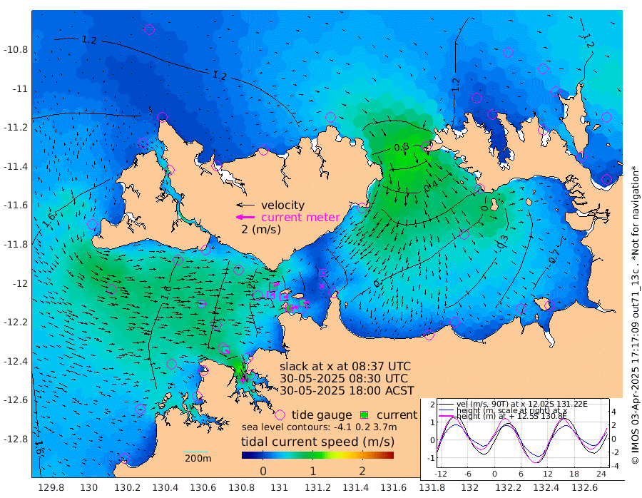 97cm/s 79T +4cm/s rms + 6cm/s 51T. Darwin_C1 52m 67cm/s 83T +4cm/s rms + 7cm/s -161T. Darwin_CW1 22m 40cm/s 77T +4cm/s rms + 8cm/s 61T. Darwin_CW2 34m 14cm/s 83T +3cm/s rms + 9cm/s 98T. Darwin_CW3 22m 44cm/s 87T +5cm/s rms + 7cm/s 88T. Darwin_C3 56m 68cm/s 62T +2cm/s rms + 9cm/s -126T. Darwin_CTbW 22m 58cm/s 92T +1cm/s rms + 1cm/s -47T. DARBGF 30m 54cm/s 122T +4cm/s rms + 3cm/s 80T. NRSDAR 19m 87cm Goodrich Bank 123cm Point Jenny 125cm Native Point 130cm Fish Reef 129cm Tapa Bay 126cm Point Fawcett (Offshore) 125cm Burge Point 130cm Munkunuwa 120cm Beagle A 128cm Parsons Bank 117cm Fenton Patches 108cm Hancox Shoal Area 114cm Nightcliff 131cm Darwin 144cm Charles Point Patches 54cm Glyde Point -38cm Chambers Bay -50cm Point Stuart 24cm Cape Hotham -33cm Christine Reef -71cm West Alligator Head -108cm East Field Island -3cm Two Hills Bay 3cm Camp Point 136cm Medina Inlet South 128cm South Barlow Point 110cm St. Asaph Bay 95cm Cape Van Dieman 104cm Snake Bay 89cm Cache Point 80cm Point Jahleel (Off) 73cm Cape Don 96cm Port Essington 93cm Smith Point - West 92cm NW Peacock Island 91cm North Of Jones Shoal 33cm Peacock Island 95cm Point David 98cm D'urville Point 91cm Copeland Island 95cm One Tree Point