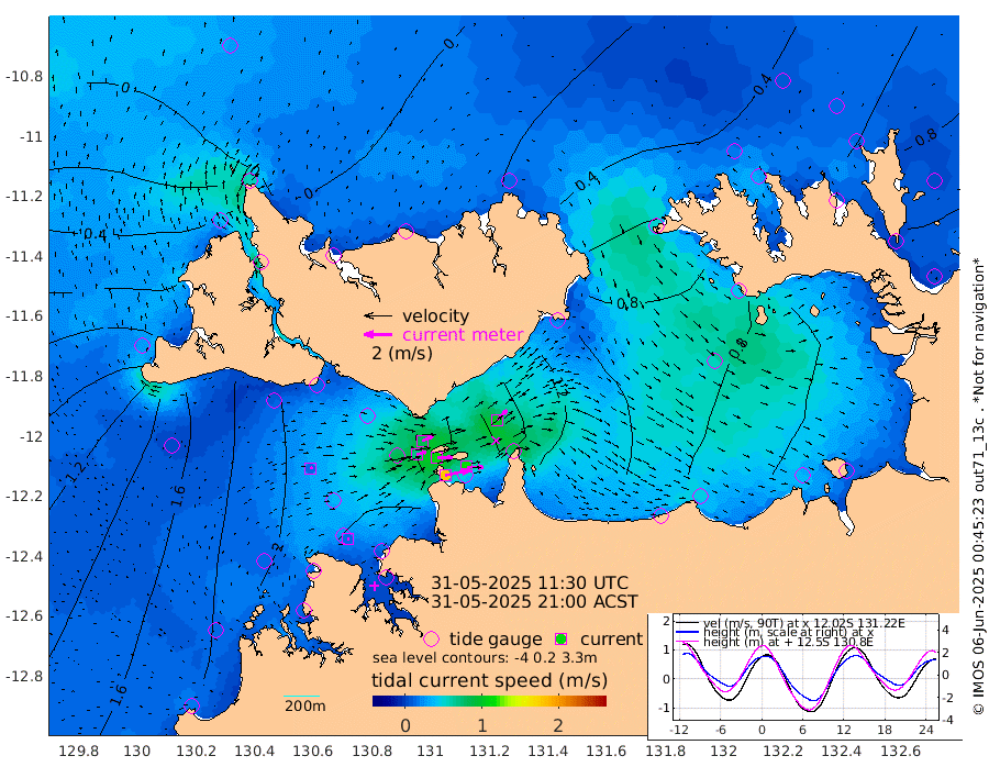 179cm/s 78T +4cm/s rms + 6cm/s 51T. Darwin_C1 52m 116cm/s 91T +4cm/s rms + 7cm/s -161T. Darwin_CW1 22m 70cm/s 74T +4cm/s rms + 8cm/s 61T. Darwin_CW2 34m 102cm/s 44T +3cm/s rms + 9cm/s 98T. Darwin_CW3 22m 111cm/s 89T +5cm/s rms + 7cm/s 88T. Darwin_C3 56m 85cm/s 65T +2cm/s rms + 9cm/s -126T. Darwin_CTbW 22m 16cm/s 78T +1cm/s rms + 1cm/s -47T. DARBGF 30m 13cm/s 87T +4cm/s rms + 3cm/s 80T. NRSDAR 19m -21cm Goodrich Bank 109cm Point Jenny 106cm Native Point 128cm Fish Reef 133cm Tapa Bay 45cm Point Fawcett (Offshore) 143cm Burge Point 127cm Munkunuwa 79cm Beagle A 164cm Parsons Bank 129cm Fenton Patches 156cm Hancox Shoal Area 149cm Nightcliff 177cm Darwin 154cm Charles Point Patches 129cm Glyde Point 98cm Chambers Bay 105cm Point Stuart 116cm Cape Hotham 83cm Christine Reef 108cm West Alligator Head 92cm East Field Island 98cm Two Hills Bay 86cm Camp Point 136cm Medina Inlet South 38cm South Barlow Point 6cm St. Asaph Bay -15cm Cape Van Dieman -4cm Snake Bay -10cm Cache Point 10cm Point Jahleel (Off) 62cm Cape Don 38cm Port Essington 35cm Smith Point - West 38cm NW Peacock Island 16cm North Of Jones Shoal 10cm Peacock Island 80cm Point David 47cm D'urville Point 85cm Copeland Island 74cm One Tree Point
