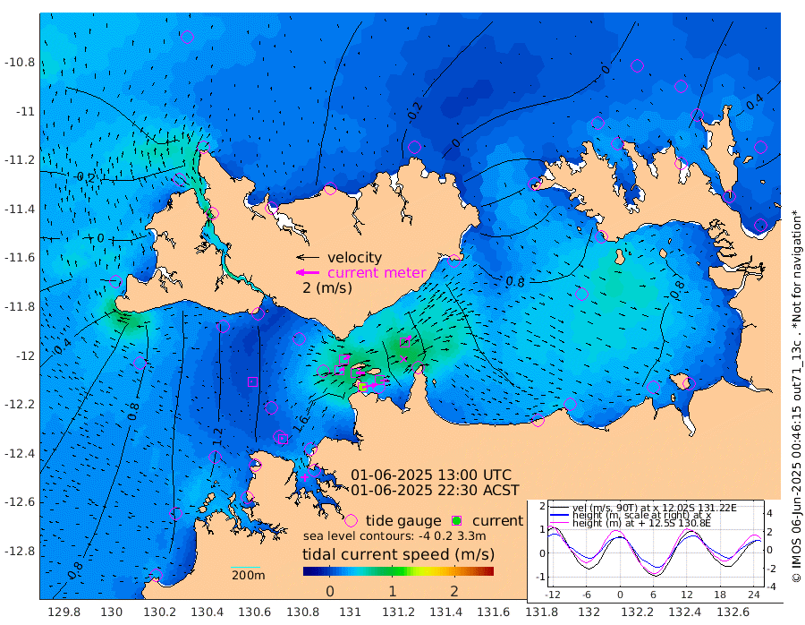 129cm/s 79T +4cm/s rms + 6cm/s 51T. Darwin_C1 52m 75cm/s 93T +4cm/s rms + 7cm/s -161T. Darwin_CW1 22m 48cm/s 71T +4cm/s rms + 8cm/s 61T. Darwin_CW2 34m 79cm/s 44T +3cm/s rms + 9cm/s 98T. Darwin_CW3 22m 77cm/s 90T +5cm/s rms + 7cm/s 88T. Darwin_C3 56m 61cm/s 65T +2cm/s rms + 9cm/s -126T. Darwin_CTbW 22m 7cm/s -60T +1cm/s rms + 1cm/s -47T. DARBGF 30m 16cm/s -39T +4cm/s rms + 3cm/s 80T. NRSDAR 19m -51cm Goodrich Bank 53cm Point Jenny 48cm Native Point 69cm Fish Reef 72cm Tapa Bay -2cm Point Fawcett (Offshore) 81cm Burge Point 64cm Munkunuwa 24cm Beagle A 103cm Parsons Bank 69cm Fenton Patches 103cm Hancox Shoal Area 92cm Nightcliff 112cm Darwin 88cm Charles Point Patches 98cm Glyde Point 107cm Chambers Bay 118cm Point Stuart 100cm Cape Hotham 87cm Christine Reef 127cm West Alligator Head 123cm East Field Island 95cm Two Hills Bay 77cm Camp Point 73cm Medina Inlet South -12cm South Barlow Point -34cm St. Asaph Bay -47cm Cape Van Dieman -39cm Snake Bay -38cm Cache Point -17cm Point Jahleel (Off) 37cm Cape Don 8cm Port Essington 6cm Smith Point - West 10cm NW Peacock Island -10cm North Of Jones Shoal 1cm Peacock Island 53cm Point David 18cm D'urville Point 60cm Copeland Island 48cm One Tree Point