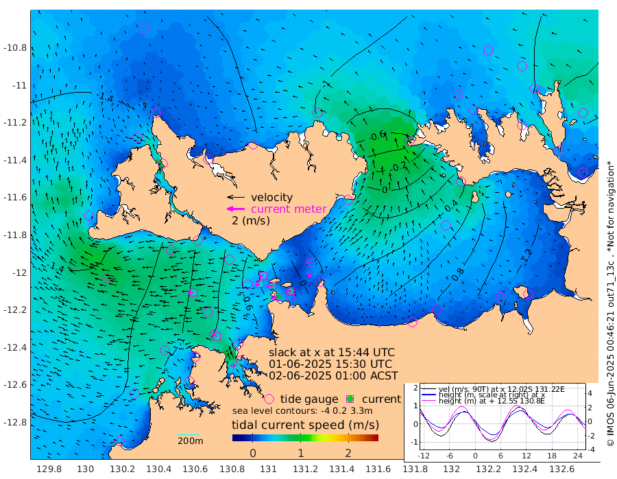 80cm/s -103T +4cm/s rms + 6cm/s 51T. Darwin_C1 52m 63cm/s -87T +4cm/s rms + 7cm/s -161T. Darwin_CW1 22m 52cm/s -108T +4cm/s rms + 8cm/s 61T. Darwin_CW2 34m 18cm/s -102T +3cm/s rms + 9cm/s 98T. Darwin_CW3 22m 65cm/s -92T +5cm/s rms + 7cm/s 88T. Darwin_C3 56m 46cm/s -116T +2cm/s rms + 9cm/s -126T. Darwin_CTbW 22m 57cm/s -90T +1cm/s rms + 1cm/s -47T. DARBGF 30m 55cm/s -58T +4cm/s rms + 3cm/s 80T. NRSDAR 19m -106cm Goodrich Bank -112cm Point Jenny -117cm Native Point -107cm Fish Reef -112cm Tapa Bay -130cm Point Fawcett (Offshore) -101cm Burge Point -121cm Munkunuwa -118cm Beagle A -90cm Parsons Bank -98cm Fenton Patches -74cm Hancox Shoal Area -93cm Nightcliff -93cm Darwin -111cm Charles Point Patches -18cm Glyde Point 71cm Chambers Bay 91cm Point Stuart 16cm Cape Hotham 54cm Christine Reef 108cm West Alligator Head 143cm East Field Island 39cm Two Hills Bay 26cm Camp Point -118cm Medina Inlet South -134cm South Barlow Point -128cm St. Asaph Bay -110cm Cape Van Dieman -115cm Snake Bay -99cm Cache Point -82cm Point Jahleel (Off) -47cm Cape Don -71cm Port Essington -72cm Smith Point - West -64cm NW Peacock Island -78cm North Of Jones Shoal -25cm Peacock Island -32cm Point David -64cm D'urville Point -23cm Copeland Island -39cm One Tree Point