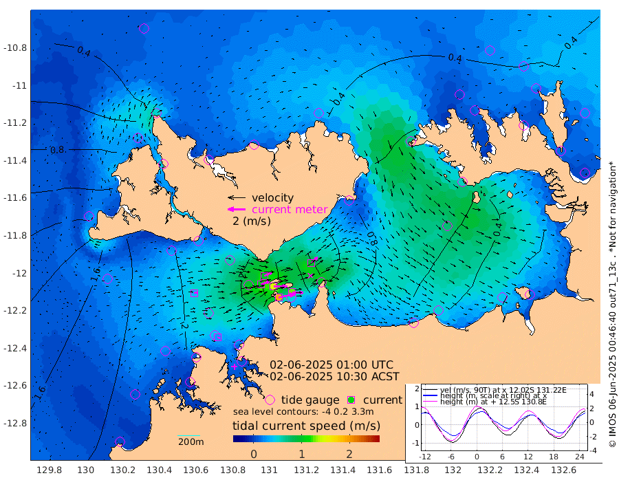 192cm/s 78T +4cm/s rms + 6cm/s 51T. Darwin_C1 52m 127cm/s 93T +4cm/s rms + 7cm/s -161T. Darwin_CW1 22m 102cm/s 72T +4cm/s rms + 8cm/s 61T. Darwin_CW2 34m 98cm/s 48T +3cm/s rms + 9cm/s 98T. Darwin_CW3 22m 152cm/s 89T +5cm/s rms + 7cm/s 88T. Darwin_C3 56m 99cm/s 66T +2cm/s rms + 9cm/s -126T. Darwin_CTbW 22m 37cm/s 81T +1cm/s rms + 1cm/s -47T. DARBGF 30m 28cm/s 106T +4cm/s rms + 3cm/s 80T. NRSDAR 19m 24cm Goodrich Bank 168cm Point Jenny 167cm Native Point 183cm Fish Reef 185cm Tapa Bay 106cm Point Fawcett (Offshore) 194cm Burge Point 182cm Munkunuwa 152cm Beagle A 190cm Parsons Bank 189cm Fenton Patches 181cm Hancox Shoal Area 196cm Nightcliff 208cm Darwin 190cm Charles Point Patches 146cm Glyde Point 105cm Chambers Bay 100cm Point Stuart 120cm Cape Hotham 97cm Christine Reef 108cm West Alligator Head 88cm East Field Island 101cm Two Hills Bay 88cm Camp Point 188cm Medina Inlet South 89cm South Barlow Point 65cm St. Asaph Bay 27cm Cape Van Dieman 34cm Snake Bay 30cm Cache Point 42cm Point Jahleel (Off) 71cm Cape Don 40cm Port Essington 43cm Smith Point - West 35cm NW Peacock Island 27cm North Of Jones Shoal 10cm Peacock Island 31cm Point David 39cm D'urville Point 30cm Copeland Island 36cm One Tree Point