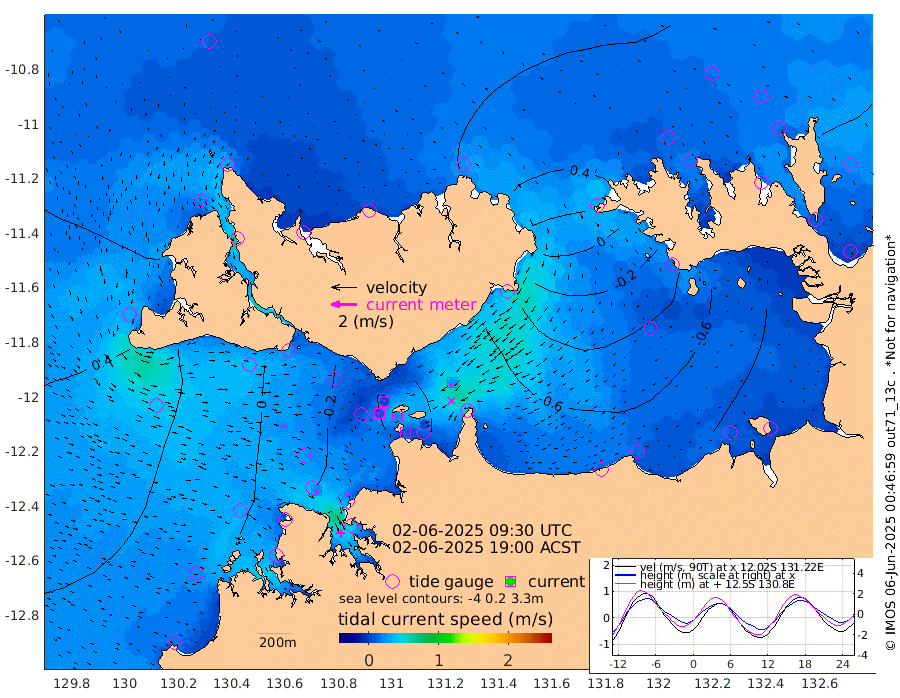 8cm/s -107T +4cm/s rms + 6cm/s 51T. Darwin_C1 52m 6cm/s 66T +4cm/s rms + 7cm/s -161T. Darwin_CW1 22m 10cm/s -111T +4cm/s rms + 8cm/s 61T. Darwin_CW2 34m 30cm/s -143T +3cm/s rms + 9cm/s 98T. Darwin_CW3 22m 23cm/s -89T +5cm/s rms + 7cm/s 88T. Darwin_C3 56m 4cm/s 53T +2cm/s rms + 9cm/s -126T. Darwin_CTbW 22m 22cm/s 100T +1cm/s rms + 1cm/s -47T. DARBGF 30m 23cm/s 130T +4cm/s rms + 3cm/s 80T. NRSDAR 19m 55cm Goodrich Bank -9cm Point Jenny -5cm Native Point -19cm Fish Reef -11cm Tapa Bay 33cm Point Fawcett (Offshore) -27cm Burge Point -4cm Munkunuwa -7cm Beagle A -21cm Parsons Bank -33cm Fenton Patches -29cm Hancox Shoal Area -29cm Nightcliff -28cm Darwin -8cm Charles Point Patches -53cm Glyde Point -98cm Chambers Bay -107cm Point Stuart -64cm Cape Hotham -86cm Christine Reef -124cm West Alligator Head -142cm East Field Island -70cm Two Hills Bay -56cm Camp Point -8cm Medina Inlet South 45cm South Barlow Point 49cm St. Asaph Bay 58cm Cape Van Dieman 62cm Snake Bay 48cm Cache Point 34cm Point Jahleel (Off) 5cm Cape Don 37cm Port Essington 33cm Smith Point - West 36cm NW Peacock Island 46cm North Of Jones Shoal 16cm Peacock Island 31cm Point David 35cm D'urville Point 26cm Copeland Island 31cm One Tree Point