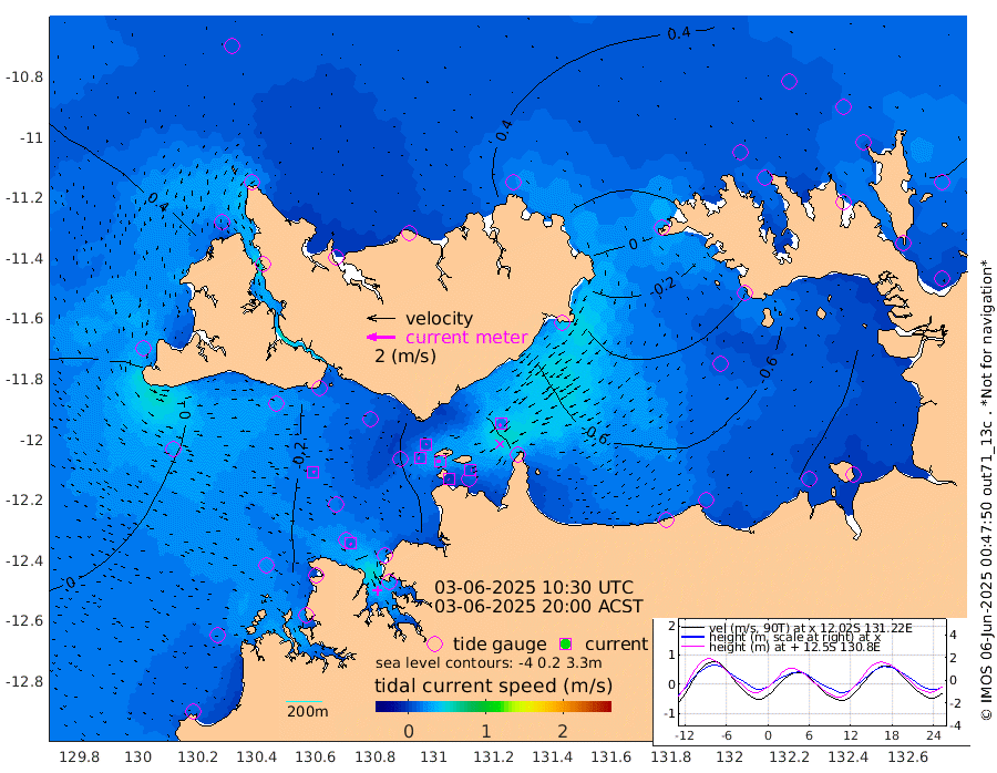 1cm/s 119T +4cm/s rms + 6cm/s 51T. Darwin_C1 52m 8cm/s 67T +4cm/s rms + 7cm/s -161T. Darwin_CW1 22m 13cm/s -109T +4cm/s rms + 8cm/s 61T. Darwin_CW2 34m 21cm/s -148T +3cm/s rms + 9cm/s 98T. Darwin_CW3 22m 27cm/s -89T +5cm/s rms + 7cm/s 88T. Darwin_C3 56m 7cm/s 56T +2cm/s rms + 9cm/s -126T. Darwin_CTbW 22m 14cm/s 104T +1cm/s rms + 1cm/s -47T. DARBGF 30m 16cm/s 130T +4cm/s rms + 3cm/s 80T. NRSDAR 19m 36cm Goodrich Bank -30cm Point Jenny -26cm Native Point -42cm Fish Reef -30cm Tapa Bay 8cm Point Fawcett (Offshore) -49cm Burge Point -21cm Munkunuwa -32cm Beagle A -38cm Parsons Bank -55cm Fenton Patches -43cm Hancox Shoal Area -47cm Nightcliff -47cm Darwin -31cm Charles Point Patches -65cm Glyde Point -99cm Chambers Bay -106cm Point Stuart -71cm Cape Hotham -88cm Christine Reef -121cm West Alligator Head -138cm East Field Island -75cm Two Hills Bay -64cm Camp Point -29cm Medina Inlet South 22cm South Barlow Point 26cm St. Asaph Bay 38cm Cape Van Dieman 41cm Snake Bay 27cm Cache Point 17cm Point Jahleel (Off) -10cm Cape Don 20cm Port Essington 18cm Smith Point - West 20cm NW Peacock Island 28cm North Of Jones Shoal 9cm Peacock Island 20cm Point David 20cm D'urville Point 16cm Copeland Island 17cm One Tree Point