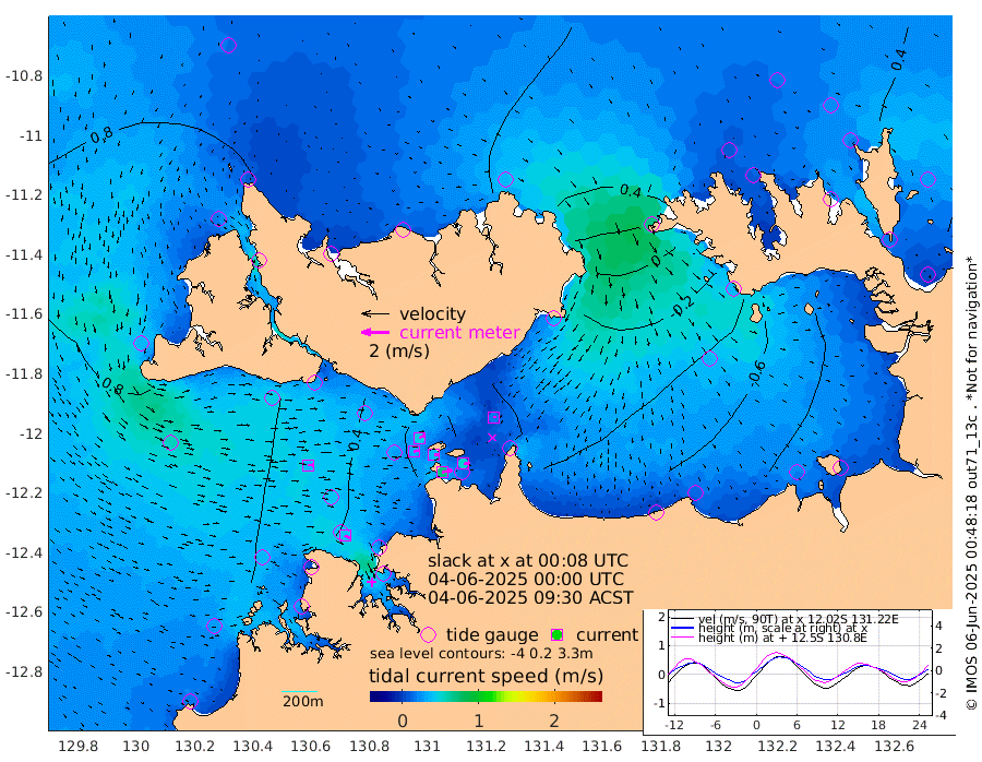 71cm/s 78T +4cm/s rms + 6cm/s 51T. Darwin_C1 52m 49cm/s 88T +4cm/s rms + 7cm/s -161T. Darwin_CW1 22m 32cm/s 74T +4cm/s rms + 8cm/s 61T. Darwin_CW2 34m 19cm/s 64T +3cm/s rms + 9cm/s 98T. Darwin_CW3 22m 36cm/s 88T +5cm/s rms + 7cm/s 88T. Darwin_C3 56m 46cm/s 64T +2cm/s rms + 9cm/s -126T. Darwin_CTbW 22m 40cm/s 91T +1cm/s rms + 1cm/s -47T. DARBGF 30m 40cm/s 119T +4cm/s rms + 3cm/s 80T. NRSDAR 19m 62cm Goodrich Bank 64cm Point Jenny 66cm Native Point 63cm Fish Reef 61cm Tapa Bay 73cm Point Fawcett (Offshore) 57cm Burge Point 69cm Munkunuwa 76cm Beagle A 54cm Parsons Bank 64cm Fenton Patches 43cm Hancox Shoal Area 59cm Nightcliff 50cm Darwin 59cm Charles Point Patches 4cm Glyde Point -49cm Chambers Bay -66cm Point Stuart -16cm Cape Hotham -35cm Christine Reef -77cm West Alligator Head -99cm East Field Island -29cm Two Hills Bay -28cm Camp Point 66cm Medina Inlet South 82cm South Barlow Point 76cm St. Asaph Bay 64cm Cape Van Dieman 67cm Snake Bay 58cm Cache Point 49cm Point Jahleel (Off) 27cm Cape Don 42cm Port Essington 49cm Smith Point - West 43cm NW Peacock Island 49cm North Of Jones Shoal 16cm Peacock Island 16cm Point David 45cm D'urville Point 12cm Copeland Island 22cm One Tree Point