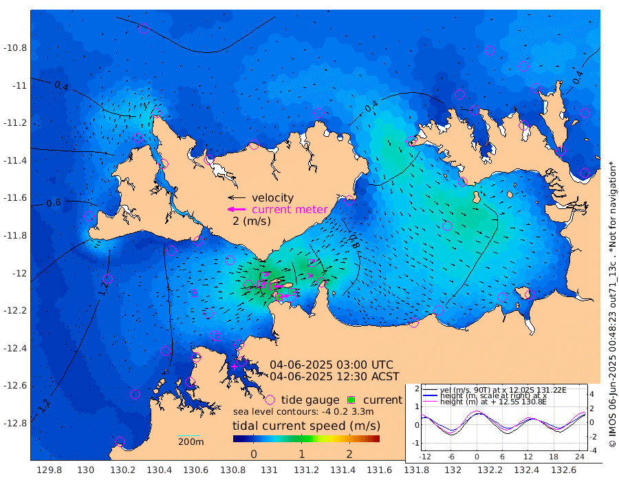 110cm/s 78T +4cm/s rms + 6cm/s 51T. Darwin_C1 52m 71cm/s 92T +4cm/s rms + 7cm/s -161T. Darwin_CW1 22m 68cm/s 72T +4cm/s rms + 8cm/s 61T. Darwin_CW2 34m 55cm/s 50T +3cm/s rms + 9cm/s 98T. Darwin_CW3 22m 101cm/s 89T +5cm/s rms + 7cm/s 88T. Darwin_C3 56m 62cm/s 65T +2cm/s rms + 9cm/s -126T. Darwin_CTbW 22m 21cm/s 79T +1cm/s rms + 1cm/s -47T. DARBGF 30m 12cm/s 97T +4cm/s rms + 3cm/s 80T. NRSDAR 19m 18cm Goodrich Bank 119cm Point Jenny 119cm Native Point 132cm Fish Reef 129cm Tapa Bay 74cm Point Fawcett (Offshore) 138cm Burge Point 120cm Munkunuwa 111cm Beagle A 133cm Parsons Bank 137cm Fenton Patches 127cm Hancox Shoal Area 138cm Nightcliff 149cm Darwin 136cm Charles Point Patches 114cm Glyde Point 95cm Chambers Bay 92cm Point Stuart 97cm Cape Hotham 85cm Christine Reef 98cm West Alligator Head 90cm East Field Island 87cm Two Hills Bay 78cm Camp Point 131cm Medina Inlet South 62cm South Barlow Point 44cm St. Asaph Bay 20cm Cape Van Dieman 25cm Snake Bay 25cm Cache Point 33cm Point Jahleel (Off) 59cm Cape Don 35cm Port Essington 36cm Smith Point - West 31cm NW Peacock Island 23cm North Of Jones Shoal 9cm Peacock Island 31cm Point David 35cm D'urville Point 30cm Copeland Island 35cm One Tree Point