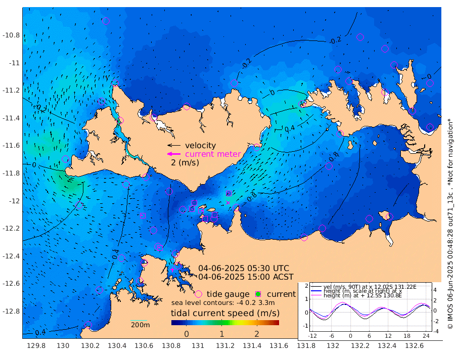 3cm/s -99T +4cm/s rms + 6cm/s 51T. Darwin_C1 52m 3cm/s 119T +4cm/s rms + 7cm/s -161T. Darwin_CW1 22m 8cm/s 82T +4cm/s rms + 8cm/s 61T. Darwin_CW2 34m 14cm/s 27T +3cm/s rms + 9cm/s 98T. Darwin_CW3 22m 27cm/s 93T +5cm/s rms + 7cm/s 88T. Darwin_C3 56m 3cm/s -130T +2cm/s rms + 9cm/s -126T. Darwin_CTbW 22m 22cm/s -81T +1cm/s rms + 1cm/s -47T. DARBGF 30m 23cm/s -53T +4cm/s rms + 3cm/s 80T. NRSDAR 19m -27cm Goodrich Bank 30cm Point Jenny 30cm Native Point 39cm Fish Reef 36cm Tapa Bay -8cm Point Fawcett (Offshore) 53cm Burge Point 24cm Munkunuwa 23cm Beagle A 41cm Parsons Bank 50cm Fenton Patches 45cm Hancox Shoal Area 42cm Nightcliff 58cm Darwin 44cm Charles Point Patches 75cm Glyde Point 101cm Chambers Bay 115cm Point Stuart 75cm Cape Hotham 89cm Christine Reef 129cm West Alligator Head 147cm East Field Island 80cm Two Hills Bay 80cm Camp Point 35cm Medina Inlet South -19cm South Barlow Point -25cm St. Asaph Bay -29cm Cape Van Dieman -30cm Snake Bay -23cm Cache Point -13cm Point Jahleel (Off) 17cm Cape Don -12cm Port Essington -18cm Smith Point - West -17cm NW Peacock Island -26cm North Of Jones Shoal -9cm Peacock Island -6cm Point David -18cm D'urville Point -5cm Copeland Island -6cm One Tree Point