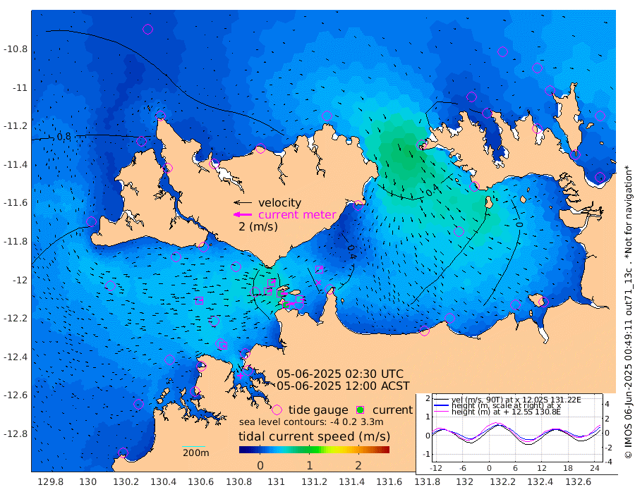 88cm/s 78T +4cm/s rms + 6cm/s 51T. Darwin_C1 52m 53cm/s 91T +4cm/s rms + 7cm/s -161T. Darwin_CW1 22m 54cm/s 73T +4cm/s rms + 8cm/s 61T. Darwin_CW2 34m 37cm/s 50T +3cm/s rms + 9cm/s 98T. Darwin_CW3 22m 75cm/s 89T +5cm/s rms + 7cm/s 88T. Darwin_C3 56m 54cm/s 65T +2cm/s rms + 9cm/s -126T. Darwin_CTbW 22m 35cm/s 88T +1cm/s rms + 1cm/s -47T. DARBGF 30m 32cm/s 116T +4cm/s rms + 3cm/s 80T. NRSDAR 19m 47cm Goodrich Bank 102cm Point Jenny 103cm Native Point 108cm Fish Reef 104cm Tapa Bay 84cm Point Fawcett (Offshore) 107cm Burge Point 100cm Munkunuwa 104cm Beagle A 103cm Parsons Bank 110cm Fenton Patches 95cm Hancox Shoal Area 110cm Nightcliff 110cm Darwin 109cm Charles Point Patches 68cm Glyde Point 32cm Chambers Bay 18cm Point Stuart 48cm Cape Hotham 31cm Christine Reef 15cm West Alligator Head -1cm East Field Island 37cm Two Hills Bay 32cm Camp Point 109cm Medina Inlet South 82cm South Barlow Point 68cm St. Asaph Bay 50cm Cape Van Dieman 56cm Snake Bay 50cm Cache Point 49cm Point Jahleel (Off) 55cm Cape Don 50cm Port Essington 54cm Smith Point - West 49cm NW Peacock Island 48cm North Of Jones Shoal 17cm Peacock Island 38cm Point David 52cm D'urville Point 35cm Copeland Island 43cm One Tree Point