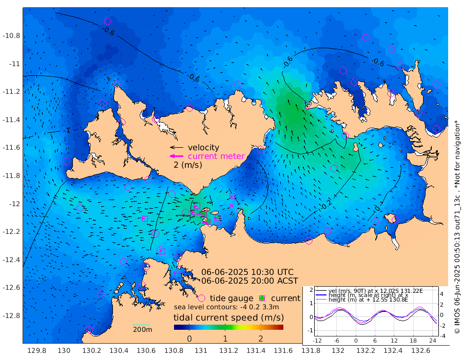 86cm/s -101T +4cm/s rms + 6cm/s 51T. Darwin_C1 52m 61cm/s -90T +4cm/s rms + 7cm/s -161T. Darwin_CW1 22m 66cm/s -107T +4cm/s rms + 8cm/s 61T. Darwin_CW2 34m 31cm/s -130T +3cm/s rms + 9cm/s 98T. Darwin_CW3 22m 92cm/s -91T +5cm/s rms + 7cm/s 88T. Darwin_C3 56m 58cm/s -115T +2cm/s rms + 9cm/s -126T. Darwin_CTbW 22m 44cm/s -93T +1cm/s rms + 1cm/s -47T. DARBGF 30m 37cm/s -62T +4cm/s rms + 3cm/s 80T. NRSDAR 19m -44cm Goodrich Bank -137cm Point Jenny -134cm Native Point -146cm Fish Reef -142cm Tapa Bay -110cm Point Fawcett (Offshore) -144cm Burge Point -132cm Munkunuwa -134cm Beagle A -136cm Parsons Bank -146cm Fenton Patches -133cm Hancox Shoal Area -155cm Nightcliff -146cm Darwin -143cm Charles Point Patches -98cm Glyde Point -67cm Chambers Bay -51cm Point Stuart -83cm Cape Hotham -58cm Christine Reef -50cm West Alligator Head -32cm East Field Island -65cm Two Hills Bay -56cm Camp Point -142cm Medina Inlet South -92cm South Barlow Point -80cm St. Asaph Bay -49cm Cape Van Dieman -54cm Snake Bay -54cm Cache Point -56cm Point Jahleel (Off) -68cm Cape Don -54cm Port Essington -60cm Smith Point - West -53cm NW Peacock Island -56cm North Of Jones Shoal -20cm Peacock Island -46cm Point David -57cm D'urville Point -46cm Copeland Island -53cm One Tree Point