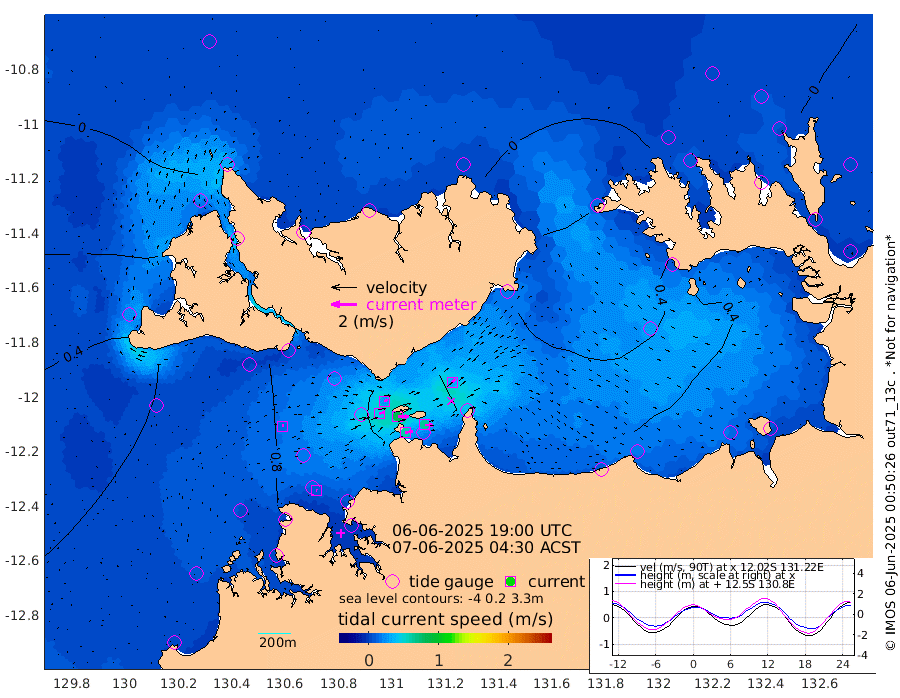 60cm/s 80T +4cm/s rms + 6cm/s 51T. Darwin_C1 52m 63cm/s 92T +4cm/s rms + 7cm/s -161T. Darwin_CW1 22m 45cm/s 74T +4cm/s rms + 8cm/s 61T. Darwin_CW2 34m 33cm/s 41T +3cm/s rms + 9cm/s 98T. Darwin_CW3 22m 82cm/s 89T +5cm/s rms + 7cm/s 88T. Darwin_C3 56m 27cm/s 67T +2cm/s rms + 9cm/s -126T. Darwin_CTbW 22m 13cm/s 74T +1cm/s rms + 1cm/s -47T. DARBGF 30m 7cm/s 104T +4cm/s rms + 3cm/s 80T. NRSDAR 19m -17cm Goodrich Bank 84cm Point Jenny 80cm Native Point 98cm Fish Reef 97cm Tapa Bay 45cm Point Fawcett (Offshore) 101cm Burge Point 88cm Munkunuwa 70cm Beagle A 96cm Parsons Bank 98cm Fenton Patches 101cm Hancox Shoal Area 109cm Nightcliff 111cm Darwin 99cm Charles Point Patches 91cm Glyde Point 92cm Chambers Bay 93cm Point Stuart 89cm Cape Hotham 75cm Christine Reef 102cm West Alligator Head 100cm East Field Island 76cm Two Hills Bay 67cm Camp Point 93cm Medina Inlet South 19cm South Barlow Point 13cm St. Asaph Bay -15cm Cape Van Dieman -15cm Snake Bay -7cm Cache Point 4cm Point Jahleel (Off) 29cm Cape Don 3cm Port Essington 4cm Smith Point - West -1cm NW Peacock Island -1cm North Of Jones Shoal 0cm Peacock Island 9cm Point David 1cm D'urville Point 12cm Copeland Island 10cm One Tree Point