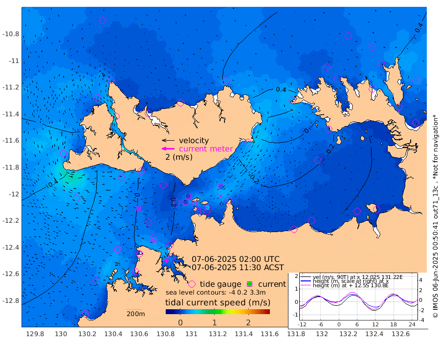 11cm/s -96T +4cm/s rms + 6cm/s 51T. Darwin_C1 52m 32cm/s -91T +4cm/s rms + 7cm/s -161T. Darwin_CW1 22m 5cm/s -102T +4cm/s rms + 8cm/s 61T. Darwin_CW2 34m 16cm/s -140T +3cm/s rms + 9cm/s 98T. Darwin_CW3 22m 24cm/s -91T +5cm/s rms + 7cm/s 88T. Darwin_C3 56m 6cm/s 62T +2cm/s rms + 9cm/s -126T. Darwin_CTbW 22m 20cm/s 97T +1cm/s rms + 1cm/s -47T. DARBGF 30m 21cm/s 128T +4cm/s rms + 3cm/s 80T. NRSDAR 19m 66cm Goodrich Bank 16cm Point Jenny 19cm Native Point 7cm Fish Reef 5cm Tapa Bay 46cm Point Fawcett (Offshore) 4cm Burge Point 5cm Munkunuwa 34cm Beagle A -3cm Parsons Bank 9cm Fenton Patches -9cm Hancox Shoal Area 2cm Nightcliff -11cm Darwin 2cm Charles Point Patches -22cm Glyde Point -44cm Chambers Bay -57cm Point Stuart -28cm Cape Hotham -29cm Christine Reef -67cm West Alligator Head -75cm East Field Island -28cm Two Hills Bay -24cm Camp Point 8cm Medina Inlet South 58cm South Barlow Point 60cm St. Asaph Bay 66cm Cape Van Dieman 69cm Snake Bay 63cm Cache Point 51cm Point Jahleel (Off) 25cm Cape Don 44cm Port Essington 48cm Smith Point - West 48cm NW Peacock Island 55cm North Of Jones Shoal 18cm Peacock Island 27cm Point David 47cm D'urville Point 23cm Copeland Island 32cm One Tree Point