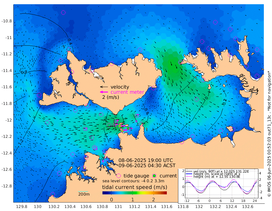 127cm/s 78T +4cm/s rms + 6cm/s 51T. Darwin_C1 52m 106cm/s 91T +4cm/s rms + 7cm/s -161T. Darwin_CW1 22m 84cm/s 74T +4cm/s rms + 8cm/s 61T. Darwin_CW2 34m 55cm/s 47T +3cm/s rms + 9cm/s 98T. Darwin_CW3 22m 124cm/s 89T +5cm/s rms + 7cm/s 88T. Darwin_C3 56m 71cm/s 66T +2cm/s rms + 9cm/s -126T. Darwin_CTbW 22m 50cm/s 87T +1cm/s rms + 1cm/s -47T. DARBGF 30m 48cm/s 115T +4cm/s rms + 3cm/s 80T. NRSDAR 19m 20cm Goodrich Bank 152cm Point Jenny 150cm Native Point 156cm Fish Reef 167cm Tapa Bay 103cm Point Fawcett (Offshore) 158cm Burge Point 158cm Munkunuwa 134cm Beagle A 154cm Parsons Bank 159cm Fenton Patches 155cm Hancox Shoal Area 173cm Nightcliff 167cm Darwin 162cm Charles Point Patches 104cm Glyde Point 61cm Chambers Bay 41cm Point Stuart 79cm Cape Hotham 51cm Christine Reef 42cm West Alligator Head 18cm East Field Island 52cm Two Hills Bay 50cm Camp Point 158cm Medina Inlet South 80cm South Barlow Point 66cm St. Asaph Bay 26cm Cape Van Dieman 26cm Snake Bay 27cm Cache Point 33cm Point Jahleel (Off) 47cm Cape Don 29cm Port Essington 35cm Smith Point - West 25cm NW Peacock Island 25cm North Of Jones Shoal 9cm Peacock Island 23cm Point David 30cm D'urville Point 23cm Copeland Island 23cm One Tree Point