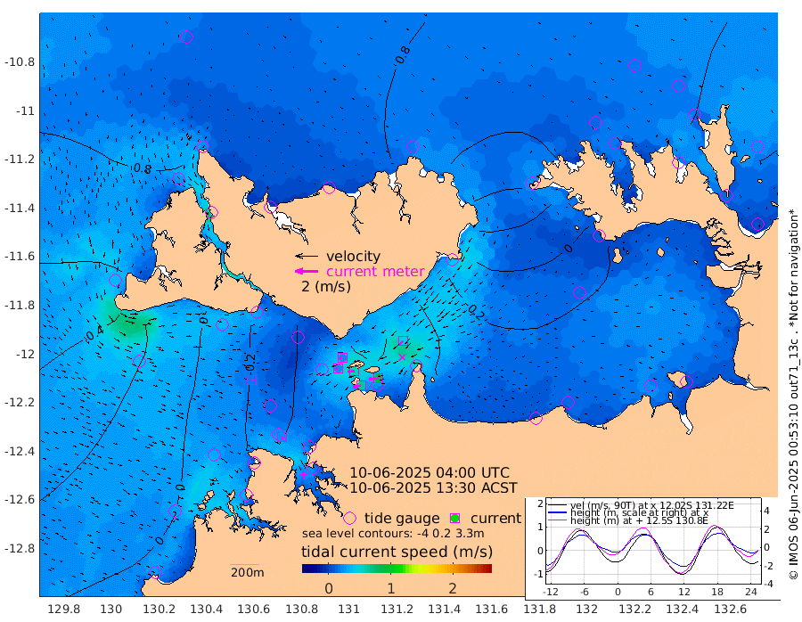 68cm/s -100T +4cm/s rms + 6cm/s 51T. Darwin_C1 52m 84cm/s -92T +4cm/s rms + 7cm/s -161T. Darwin_CW1 22m 24cm/s -106T +4cm/s rms + 8cm/s 61T. Darwin_CW2 34m 49cm/s -136T +3cm/s rms + 9cm/s 98T. Darwin_CW3 22m 57cm/s -91T +5cm/s rms + 7cm/s 88T. Darwin_C3 56m 25cm/s -115T +2cm/s rms + 9cm/s -126T. Darwin_CTbW 22m 20cm/s 102T +1cm/s rms + 1cm/s -47T. DARBGF 30m 22cm/s 137T +4cm/s rms + 3cm/s 80T. NRSDAR 19m 79cm Goodrich Bank 4cm Point Jenny 8cm Native Point -8cm Fish Reef -10cm Tapa Bay 48cm Point Fawcett (Offshore) -15cm Burge Point -12cm Munkunuwa 24cm Beagle A -24cm Parsons Bank -12cm Fenton Patches -32cm Hancox Shoal Area -26cm Nightcliff -36cm Darwin -17cm Charles Point Patches -38cm Glyde Point -61cm Chambers Bay -69cm Point Stuart -40cm Cape Hotham -48cm Christine Reef -83cm West Alligator Head -91cm East Field Island -38cm Two Hills Bay -32cm Camp Point -11cm Medina Inlet South 58cm South Barlow Point 66cm St. Asaph Bay 80cm Cape Van Dieman 82cm Snake Bay 76cm Cache Point 59cm Point Jahleel (Off) 25cm Cape Don 53cm Port Essington 54cm Smith Point - West 56cm NW Peacock Island 63cm North Of Jones Shoal 21cm Peacock Island 42cm Point David 54cm D'urville Point 35cm Copeland Island 42cm One Tree Point