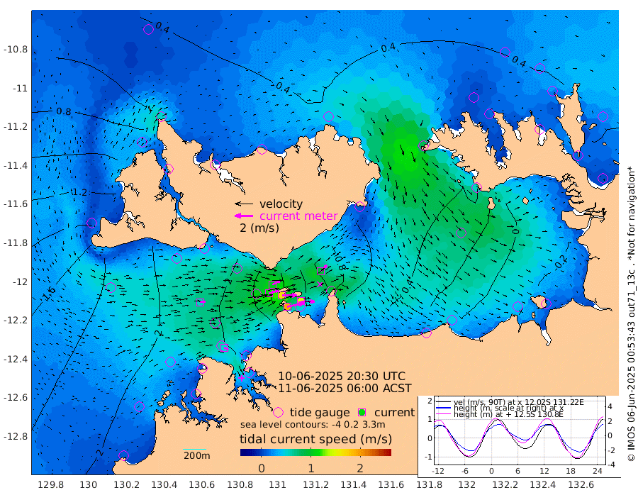 194cm/s 77T +4cm/s rms + 6cm/s 51T. Darwin_C1 52m 151cm/s 92T +4cm/s rms + 7cm/s -161T. Darwin_CW1 22m 110cm/s 74T +4cm/s rms + 8cm/s 61T. Darwin_CW2 34m 95cm/s 46T +3cm/s rms + 9cm/s 98T. Darwin_CW3 22m 162cm/s 89T +5cm/s rms + 7cm/s 88T. Darwin_C3 56m 105cm/s 66T +2cm/s rms + 9cm/s -126T. Darwin_CTbW 22m 56cm/s 85T +1cm/s rms + 1cm/s -47T. DARBGF 30m 53cm/s 113T +4cm/s rms + 3cm/s 80T. NRSDAR 19m 30cm Goodrich Bank 205cm Point Jenny 203cm Native Point 208cm Fish Reef 225cm Tapa Bay 129cm Point Fawcett (Offshore) 223cm Burge Point 212cm Munkunuwa 183cm Beagle A 214cm Parsons Bank 223cm Fenton Patches 215cm Hancox Shoal Area 238cm Nightcliff 234cm Darwin 225cm Charles Point Patches 151cm Glyde Point 93cm Chambers Bay 70cm Point Stuart 114cm Cape Hotham 90cm Christine Reef 72cm West Alligator Head 46cm East Field Island 80cm Two Hills Bay 84cm Camp Point 215cm Medina Inlet South 107cm South Barlow Point 86cm St. Asaph Bay 35cm Cape Van Dieman 37cm Snake Bay 36cm Cache Point 45cm Point Jahleel (Off) 68cm Cape Don 40cm Port Essington 47cm Smith Point - West 35cm NW Peacock Island 31cm North Of Jones Shoal 11cm Peacock Island 29cm Point David 41cm D'urville Point 29cm Copeland Island 31cm One Tree Point